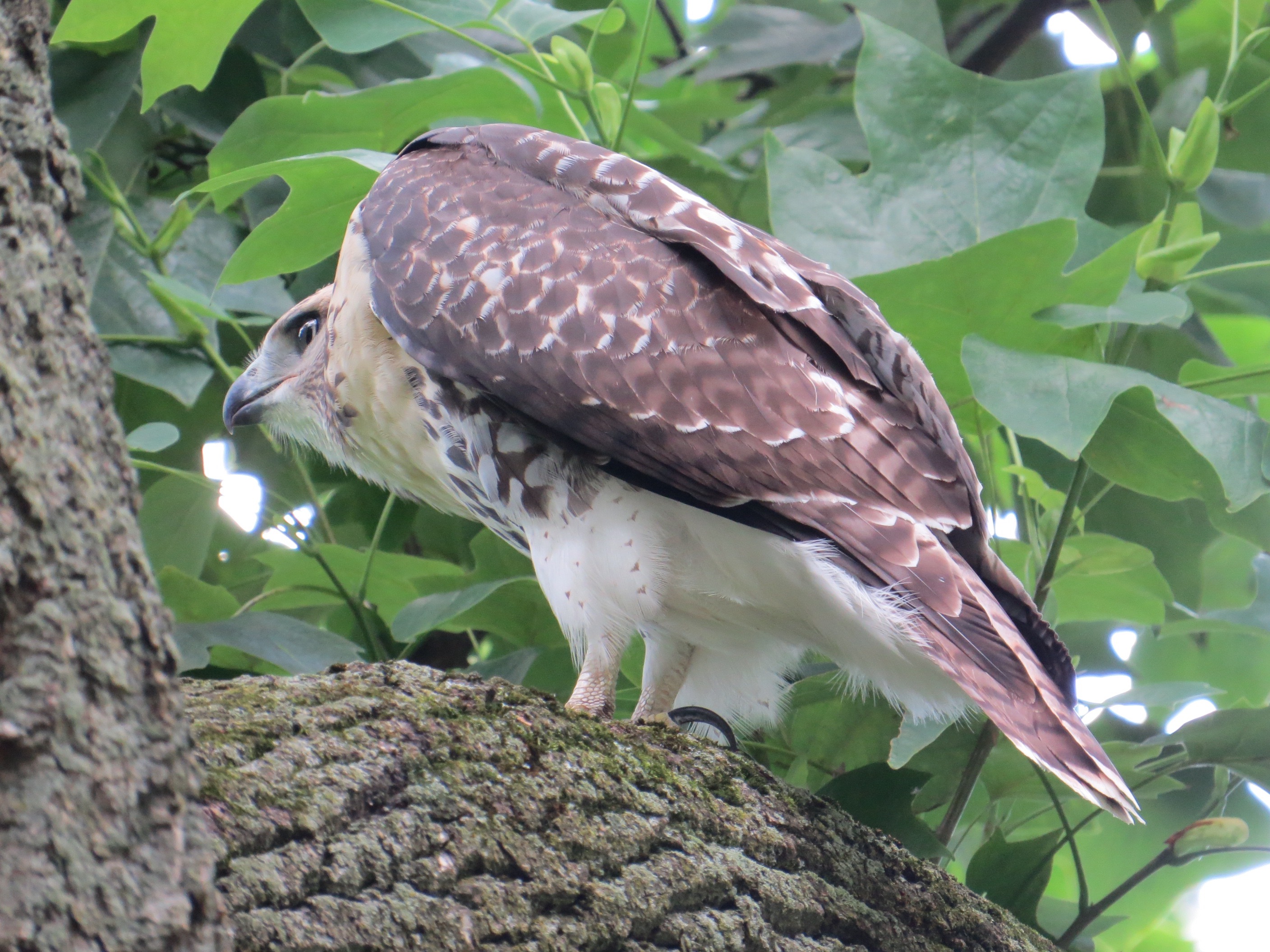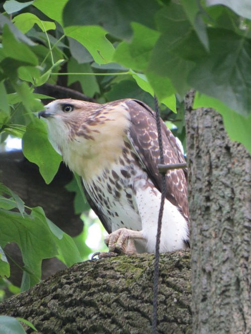 Just a short distance from a new parking lot in the Bronx, young Red-tailed Hawks continue to raise a ruckus.