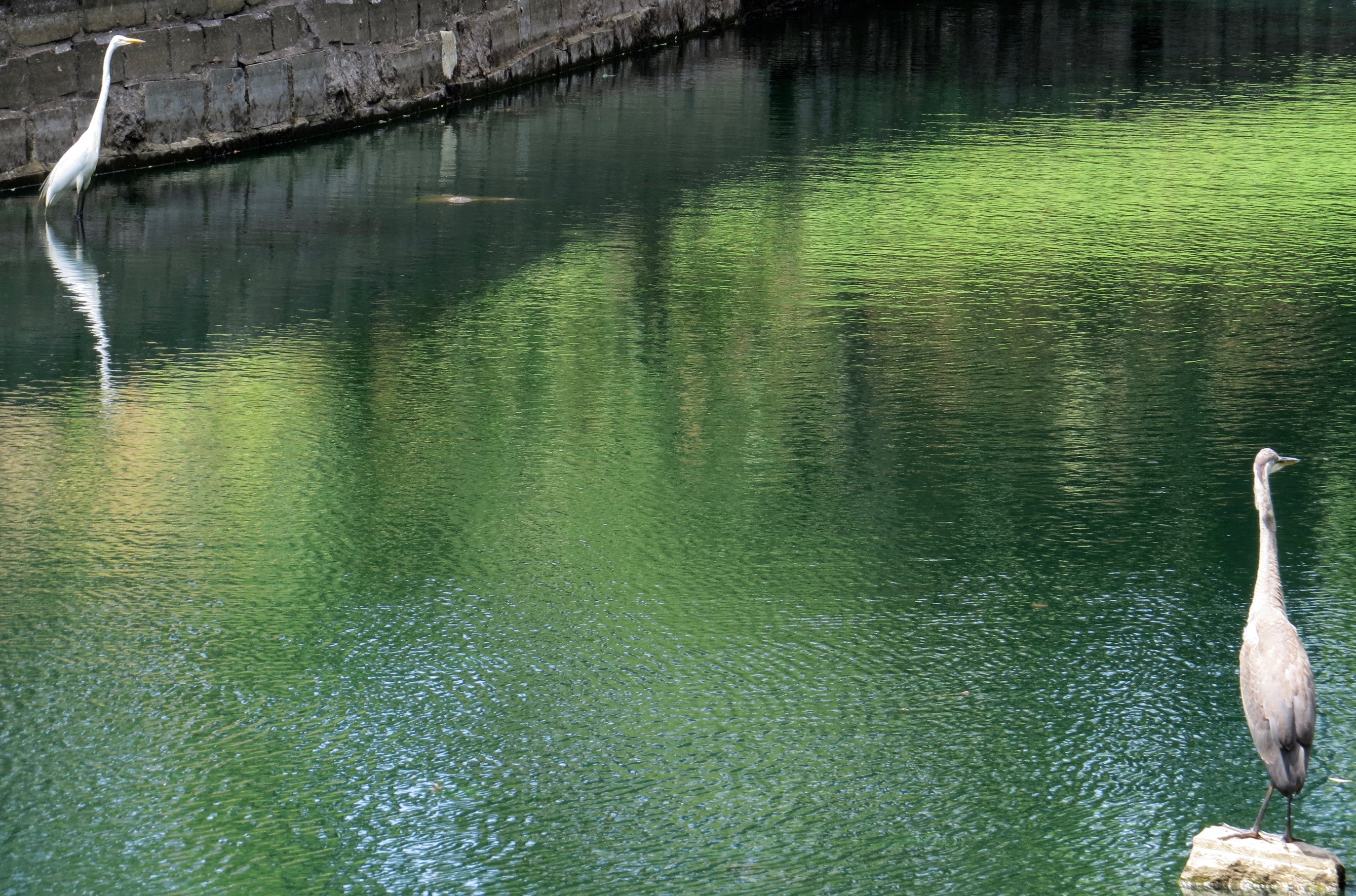 A week later on another of Green-Wood’s “waters.” Great Egret and juvenile Great Blue together again.