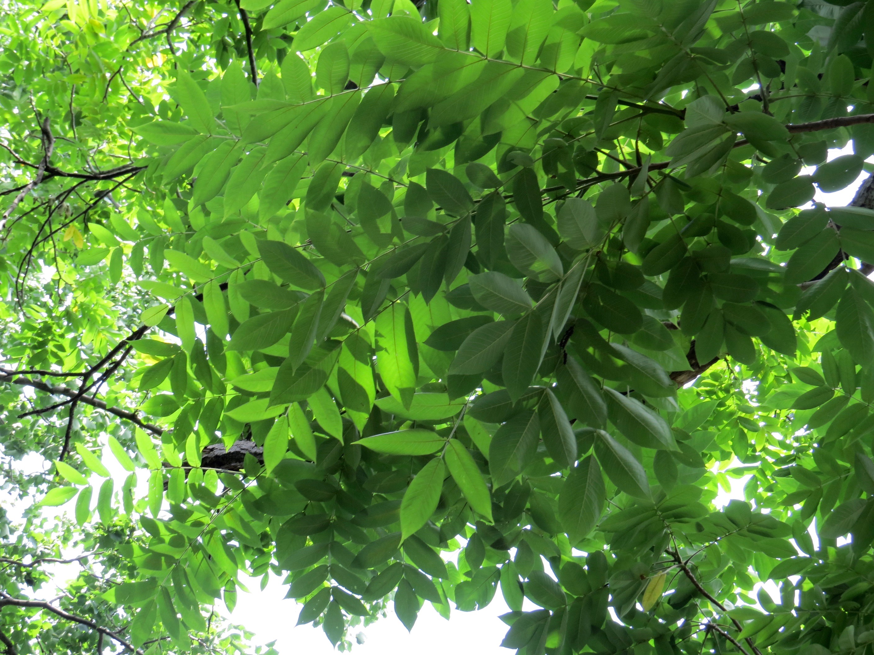 This tree, which was filled with squirrels going after its obviously delicious nuts a couple of weeks ago, puzzled me. At first I thought it was walnut, but the leaflets seemed too big and the fruits were ovoid as opposed to round and they didn’t have that distinctive smell of walnut fruits. Pecan? Too many leaflets for a hickory (Carya). I admit I passed butternut over in the book; I simply didn’t know from butternuts. And by gosh, I still don’t.