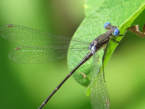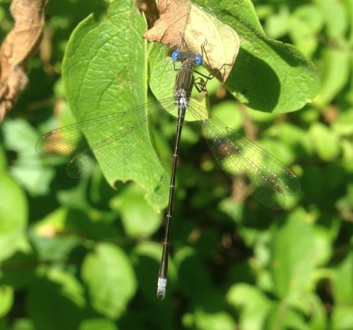Spotted in Sapsucker Woods. One of the differences between dragon and damselflies is that damselflies rest with their wings closed. Except of course for the spreadwings…