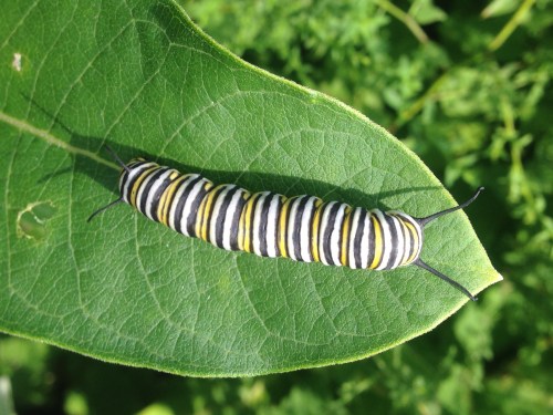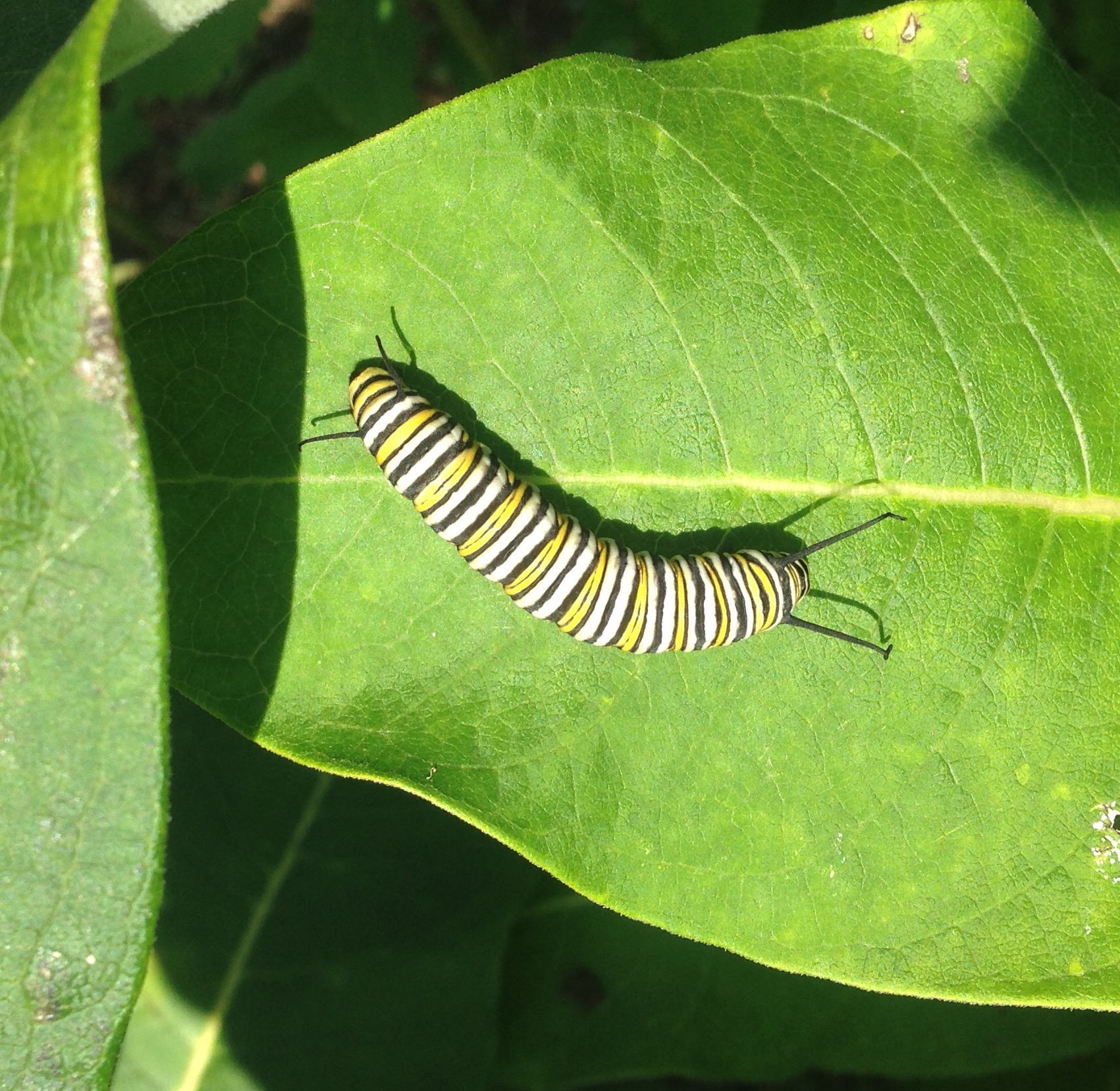 Two plump Monarch caterpillars on some common milkweed. They looked ready for a transformation, or metamorphosis….