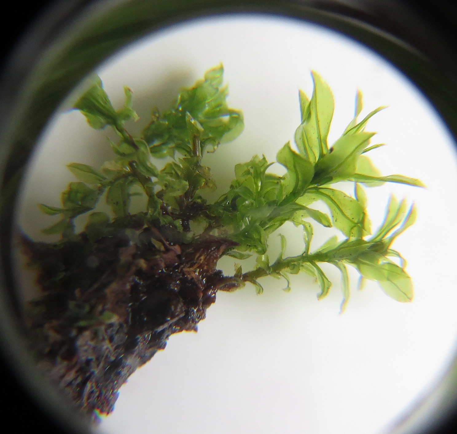 A close-up of some moss through a 10x loupe.