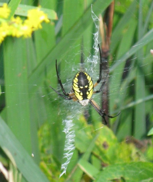 An Argiope genus spider. There was some iNaturalist/bugguide.net debate about the specific identity of this beauty, seen this past weekend on the NY/CT border at the home of friends.