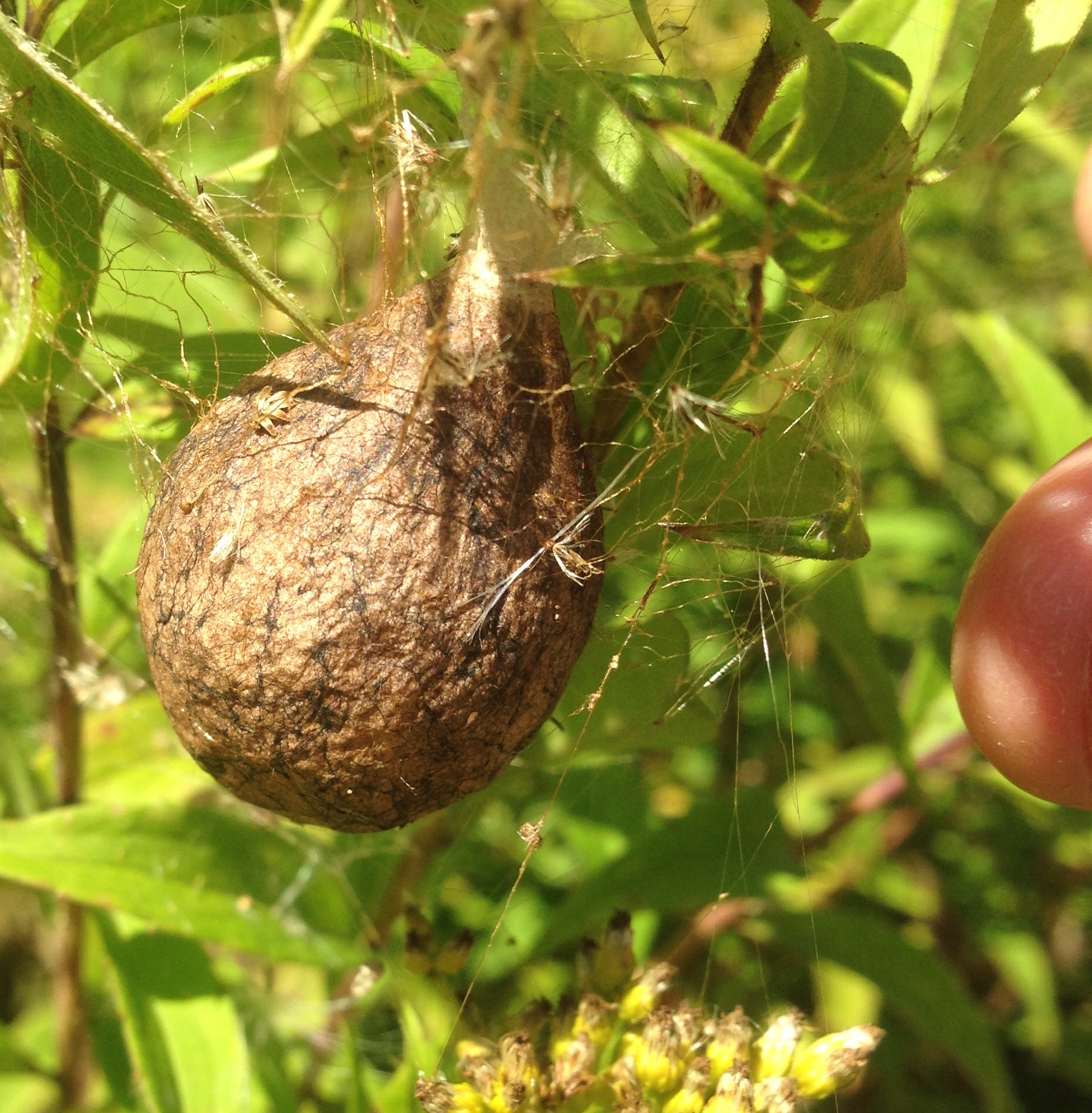 Fingernail for scale here. I’ve never seen such enormous spider egg cases.