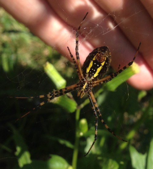 An Argiope genus spider. There was some iNaturalist/bugguide.net debate about the specific identity of this beauty, seen this past weekend on the NY/CT border at the home of friends.