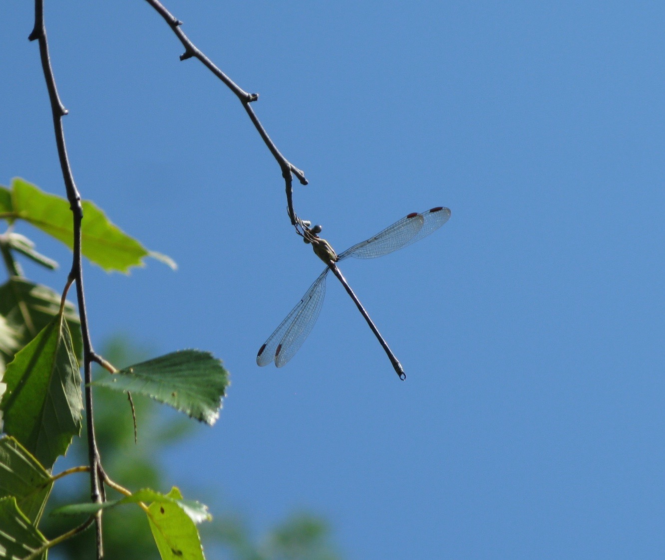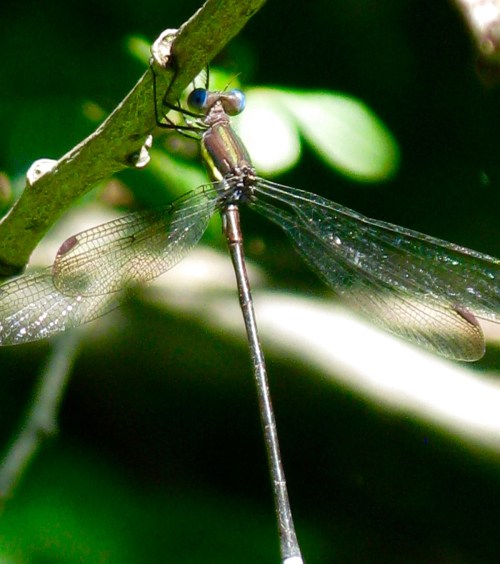 The largest damselfly in the Northeast is a Southwestern species that has been expanding its range our way for the last century. The Giant Spreadwing Archilestes grandis can be up to 2.4″ long, as big as a medium-sized dragonfly.