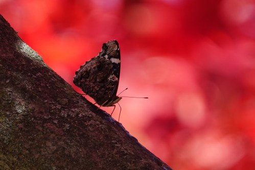 It came out for the sun. A Red Admiral. An adult like this, presuming it made it past the gauntlet of Phoebes, will hibernate through the winter. The northern reaches of this species’ territory are too cold, however (still?), so they head south. Could this one be going further south or will it try to over winter here?