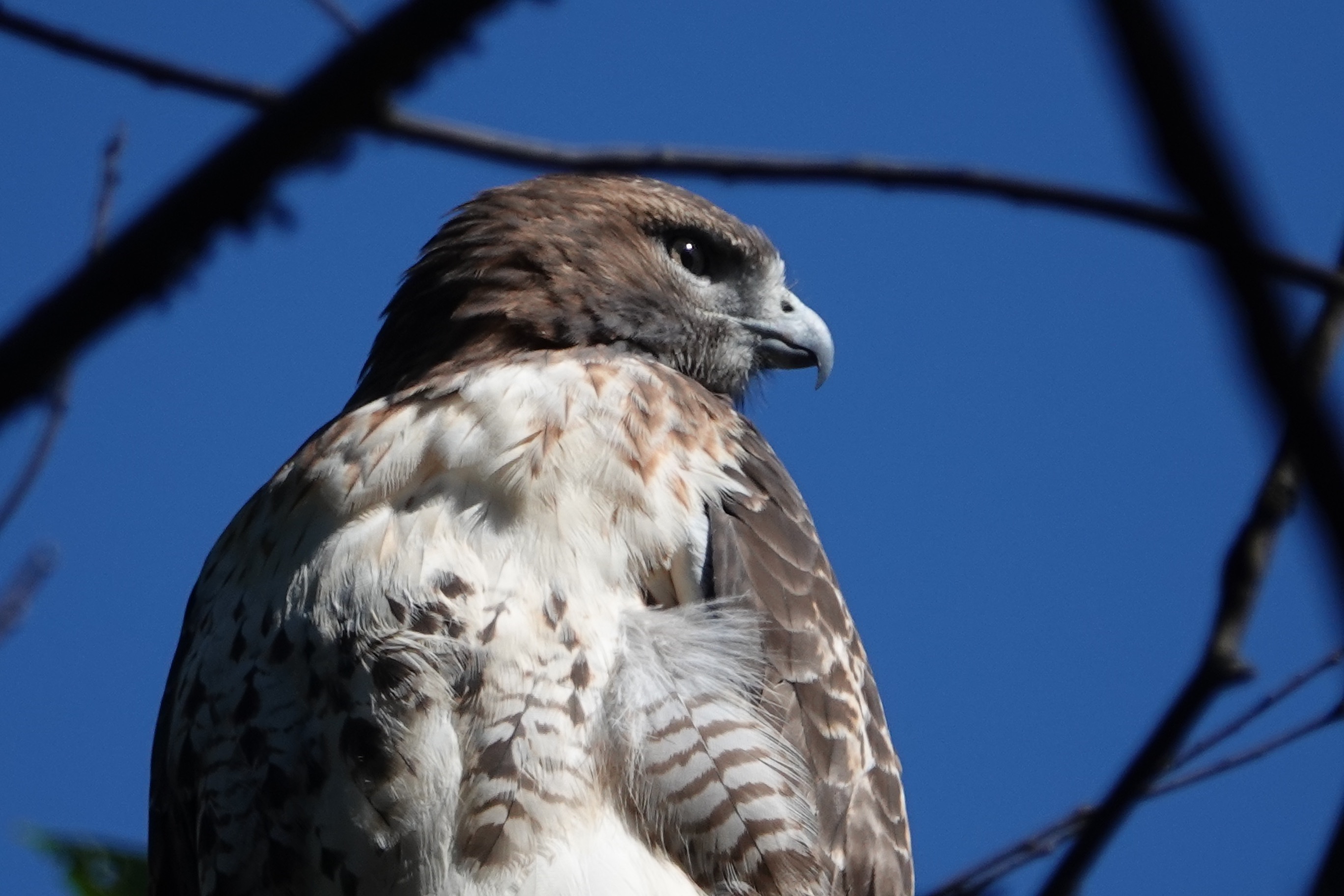 These big Buteos are not renown as bird-hunters, but they can mix songbirds as well as pigeons in with their more typical mammalian prey. Flexibility in diet must be one key to their adaptability to human environments.