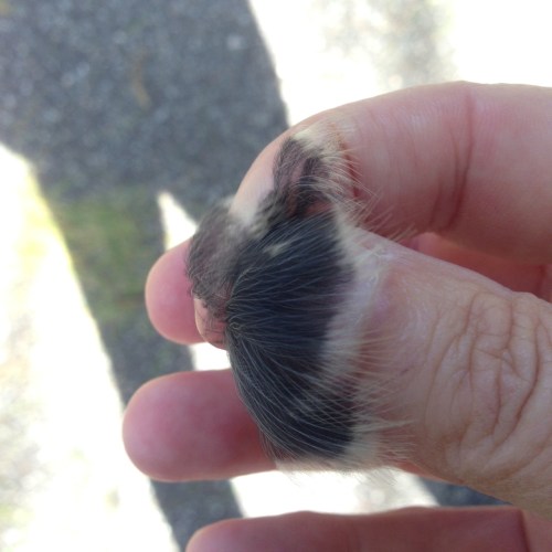 In the top picture, you can see some feathers blowing off to the right. A clump came down to me.