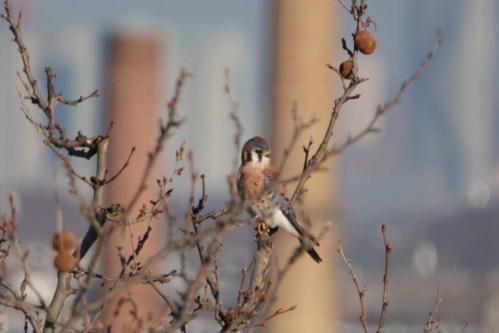 Those smokestacks in the distance, by the way, are where two Peregrines have been seen, either one at a time or in a pair, for several week now.
