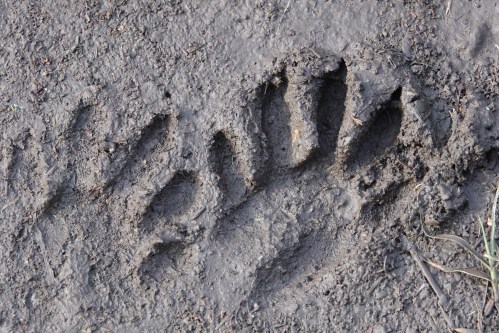 The signs of raccoons are everywhere in Green-Wood, particularly at the base of trees where they leave their poop piles. They sometimes also leave an impression….