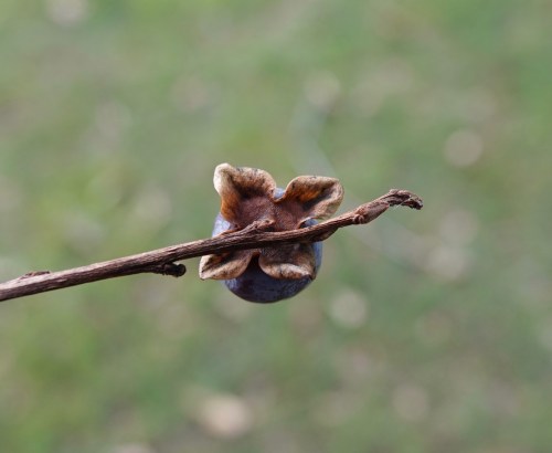 As are the calyces. The subject of today’s post is the date plum or Caucasian persimmon, which is native to a swath of territory from Spain to southwest Asia. Diospyros, the genus name, is Greek for god’s fruit.