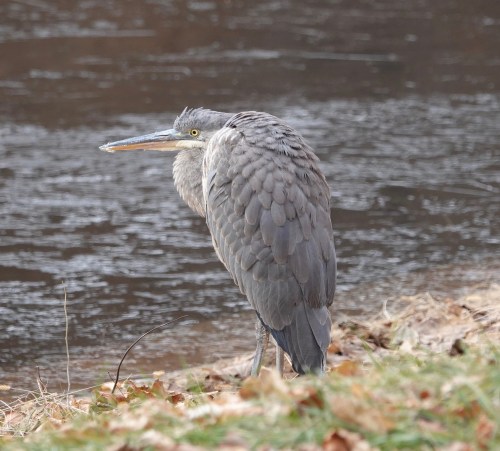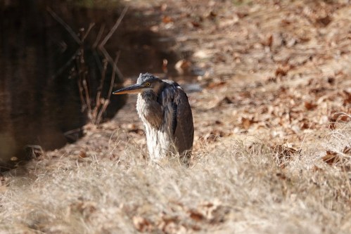 December 9th. You will notice that the water is iced over in the last picture, making fishing problematic. With fish and frogs out of the picture, what is this young Great Blue Heron eating? Whatever it can catch, presumably, including birds and small mammals. I wonder if it’s policing the Dell Water for rats? A host of bird feeders have lately appeared there, meaning there may be gleanings for rats to scarf up at night.