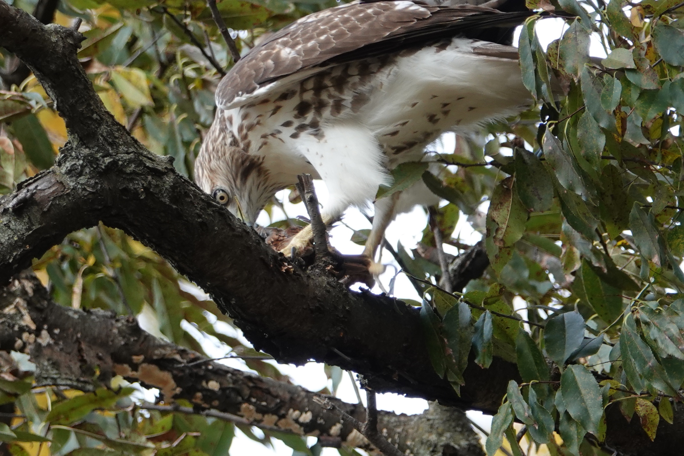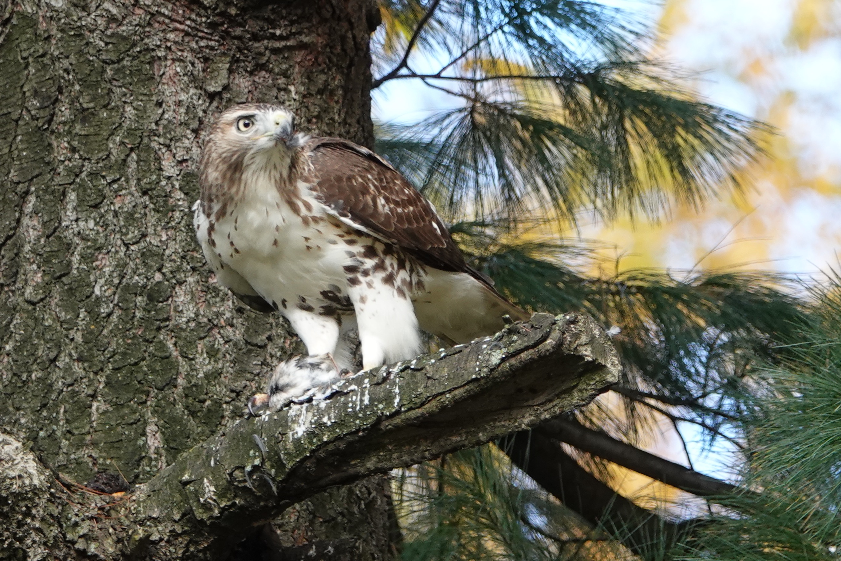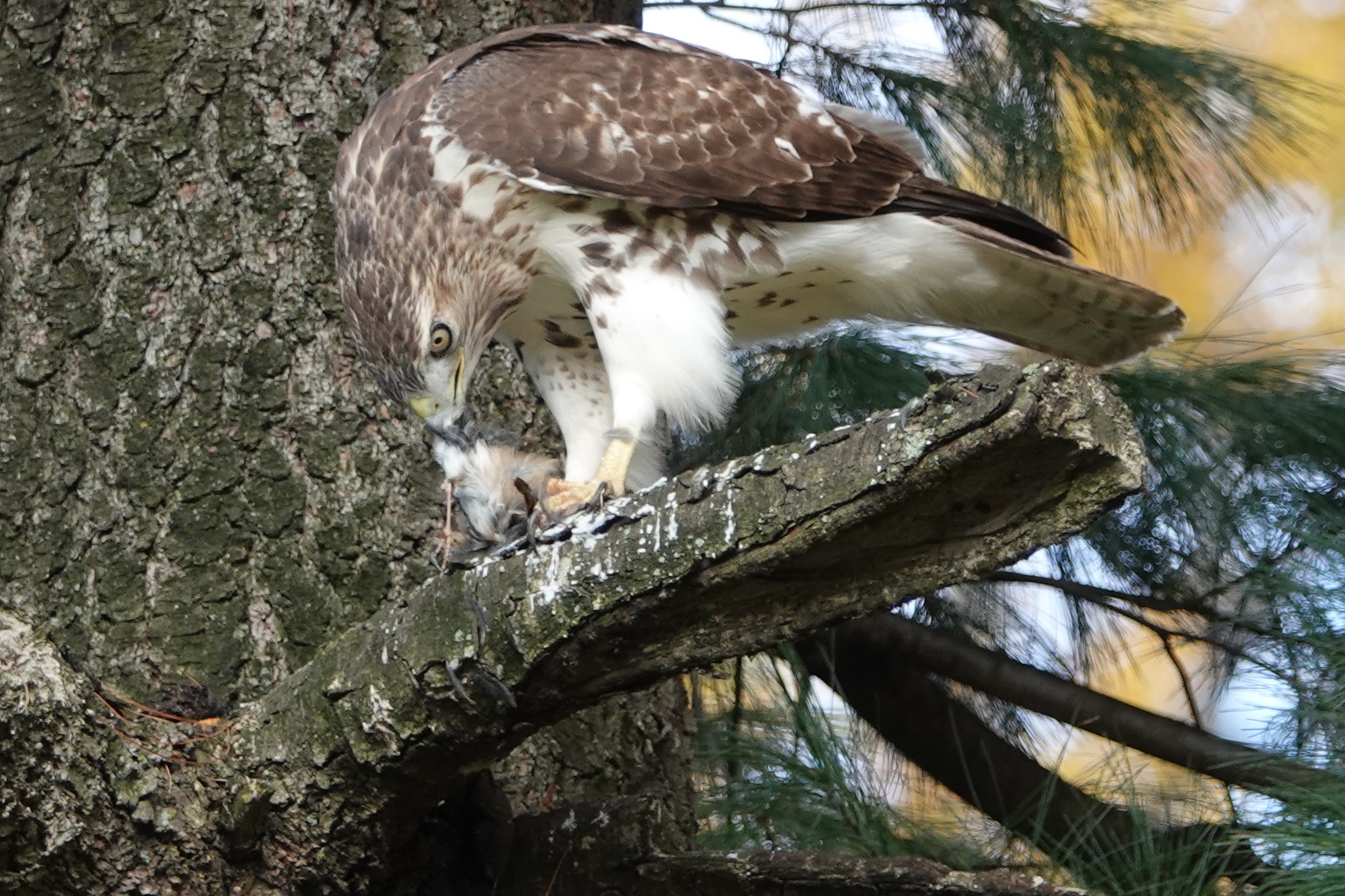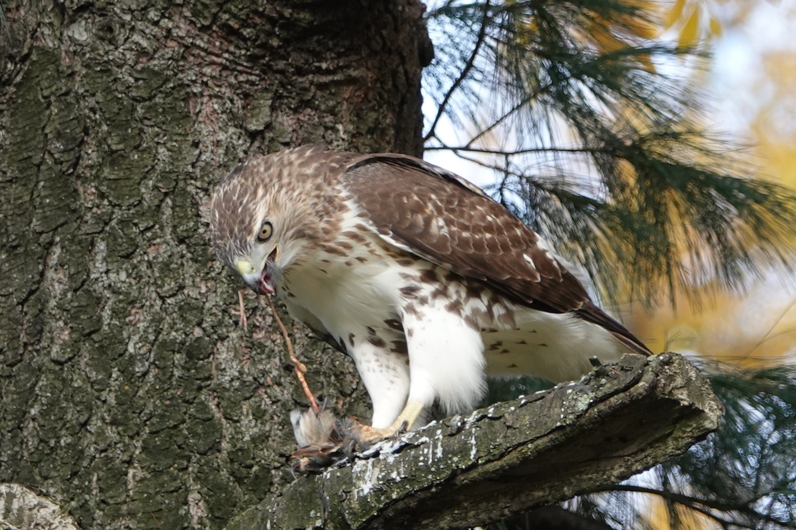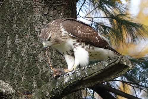 This perch in a pine seemed to be an even better butcher’s block. (It gets gory from here).