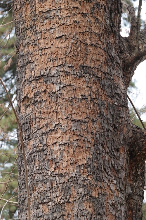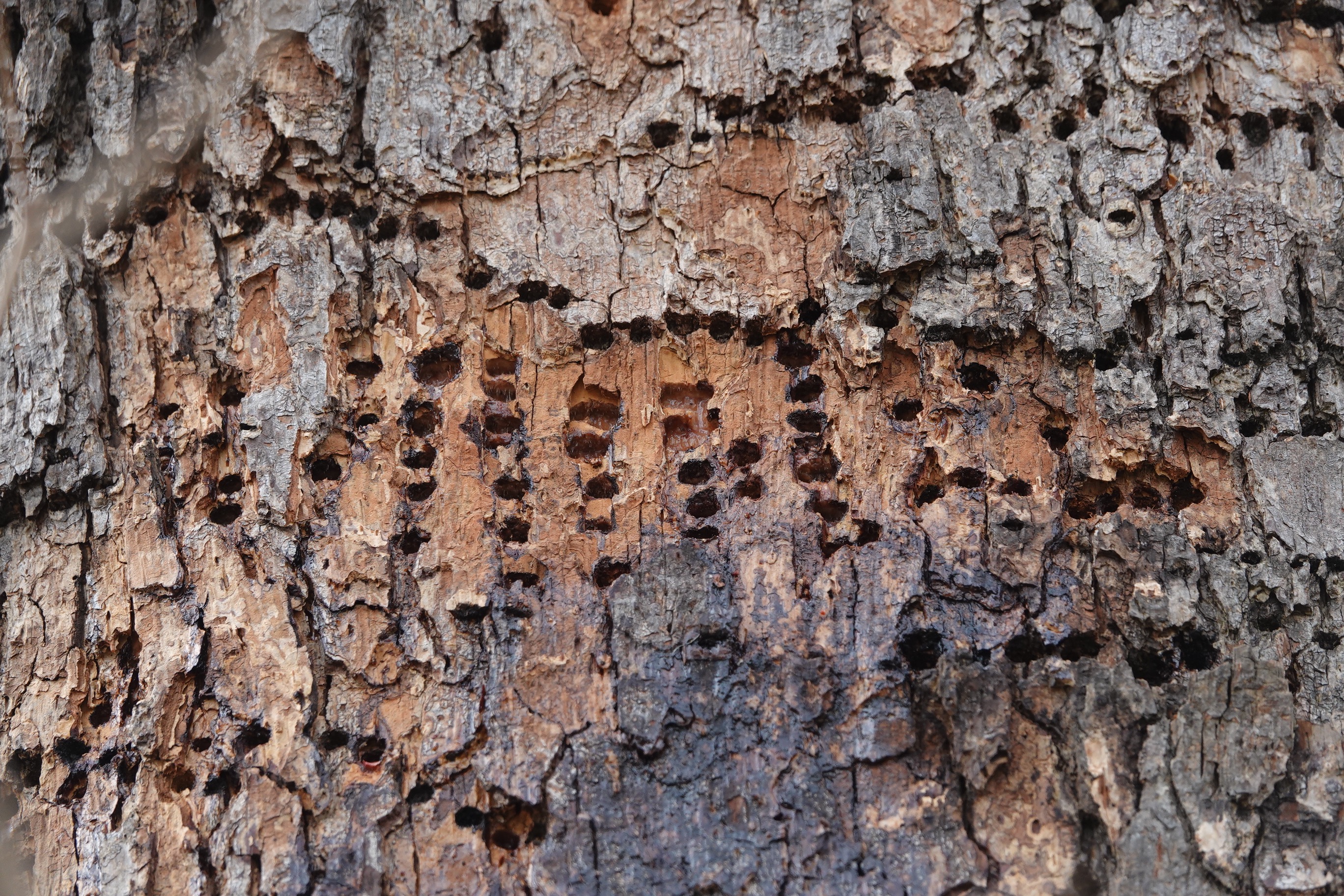 Whatever this tree is, it had been roundly tapped by Yellow-bellied Sapsuckers over the years.