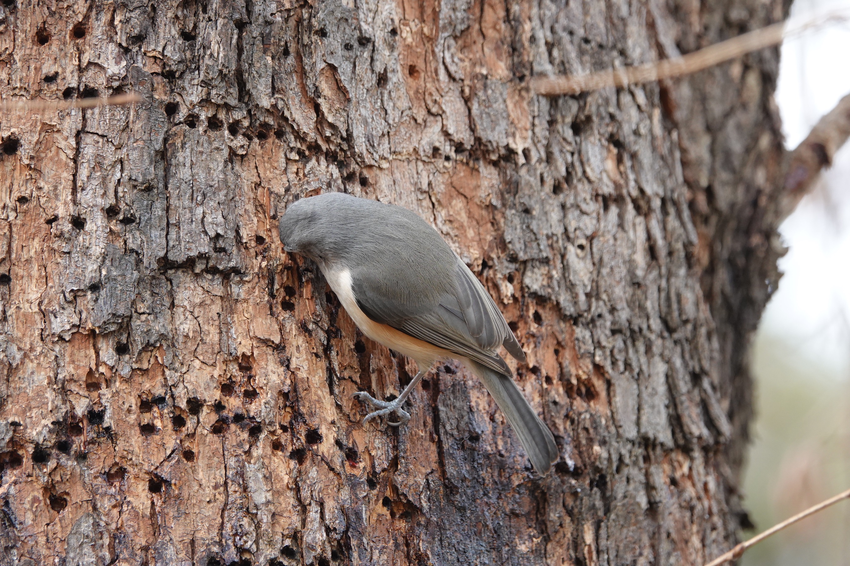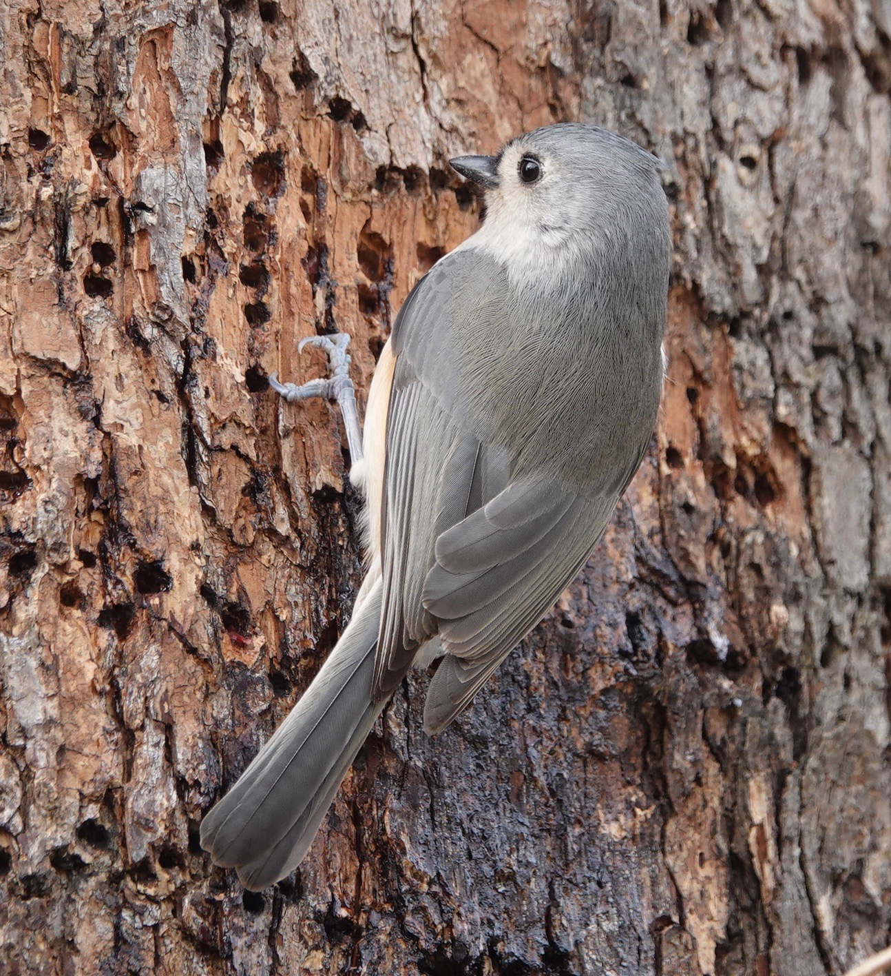 Check out those tiny toes getting footholds in the bark, in the sap holes.