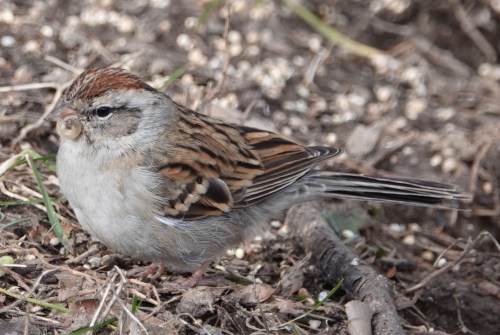 Chipping Sparrow with some kind of growth under the bill. Any thoughts?