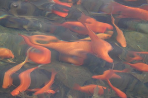 In winter, koi drop down to the bottom to chill out. Literally. They barely move, their metabolism powers down, they wait.