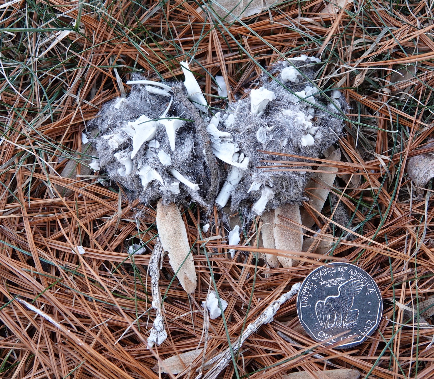 Considering I previously saw a Great Horned Owl in this tree, it’s a good bet these belong to that critter, although I saw no sign of the bird when I found these.