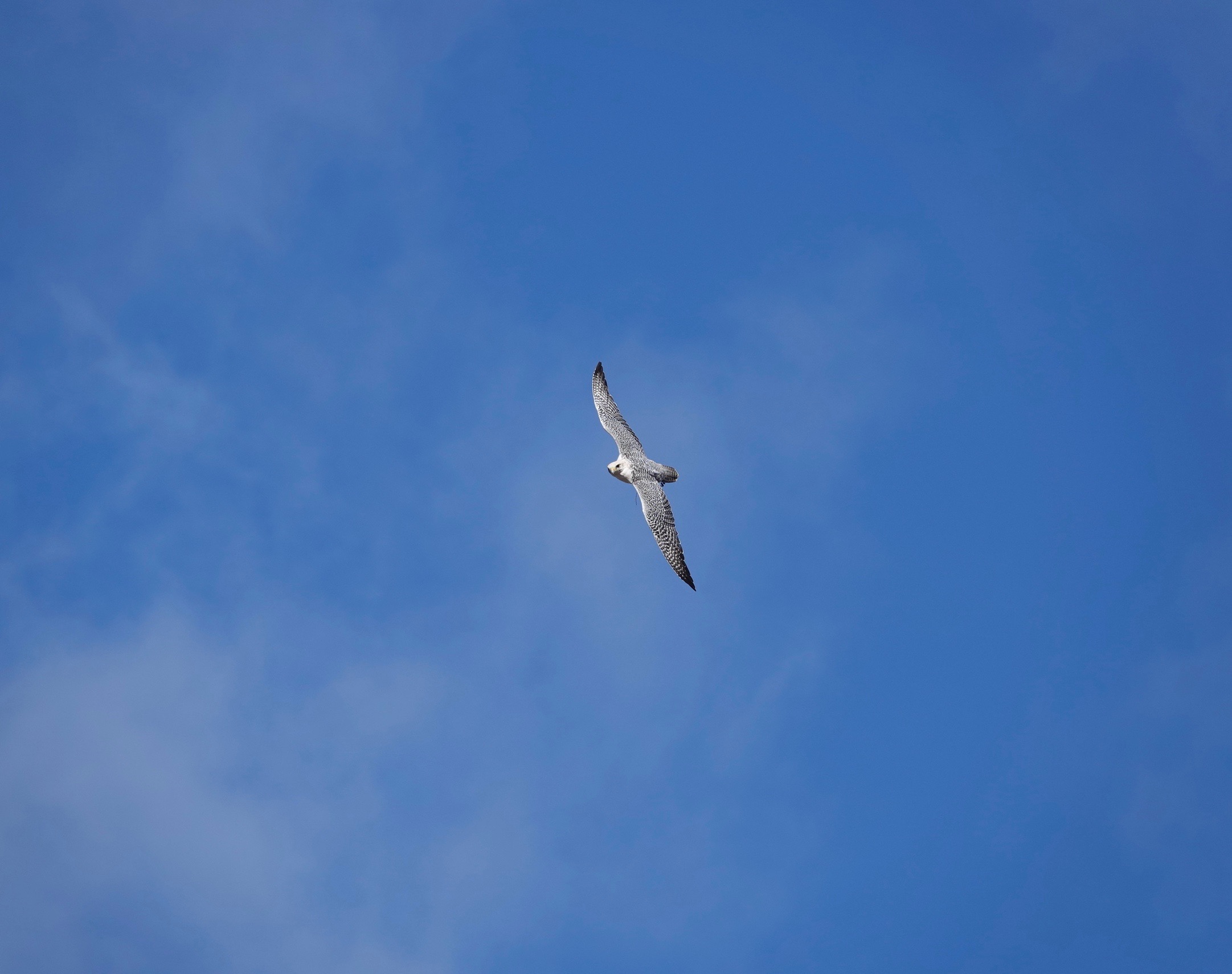The largest falcon, Gyrfalcon (Falco rusticolus).* Birds of the tundra and elsewhere northwards. Occasionally they drift down into the U.S.
