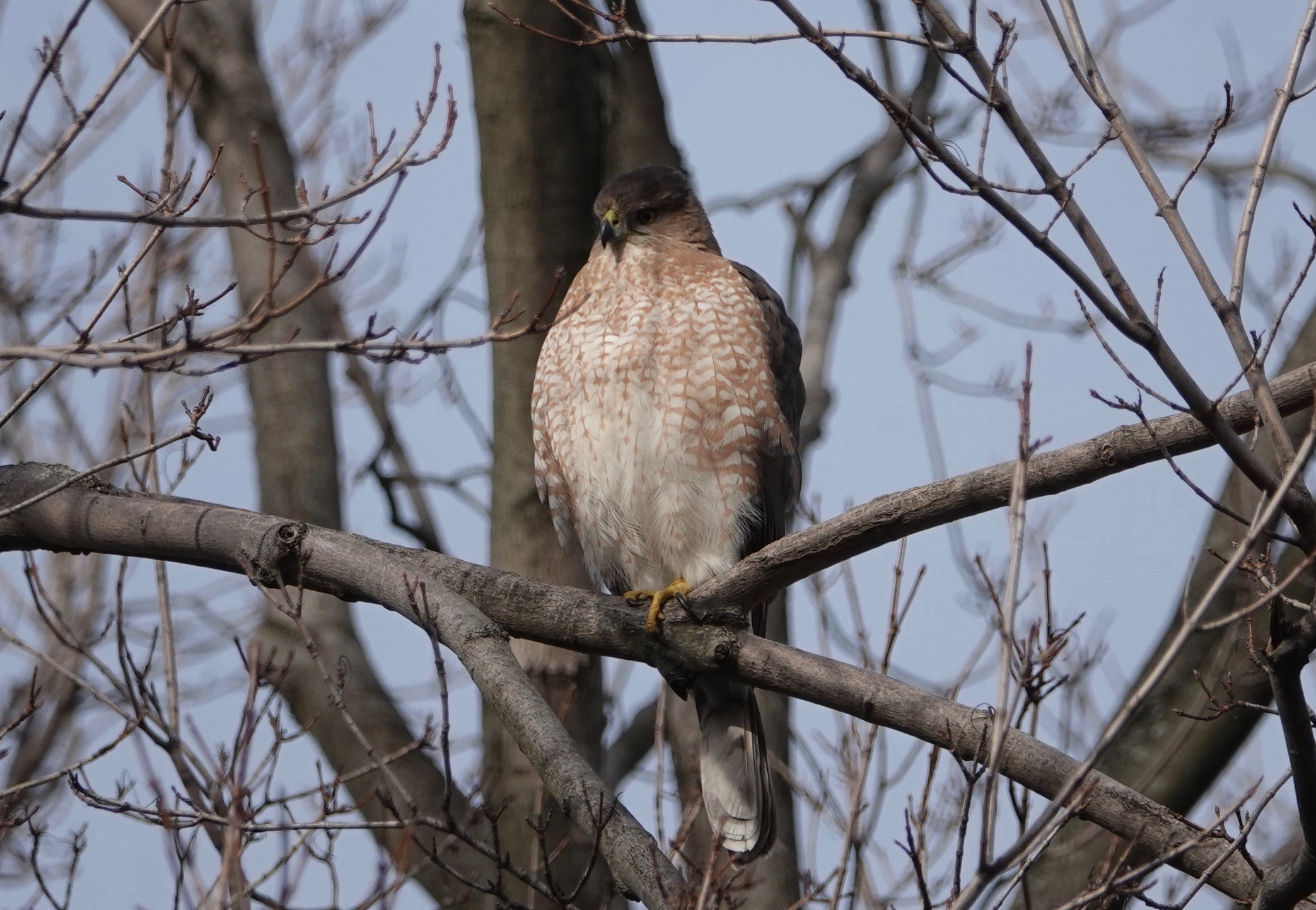 The Jays have been abundant in Green-Wood this winter. They let up a vocal storm when they run into something they don’t like. But they can’t be everywhere. This big Accipiter had the field.