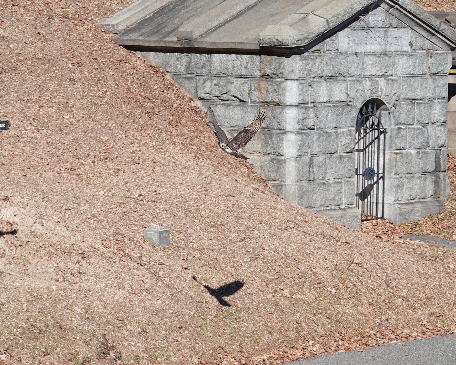 Suddenly there are two Red-tailed Hawks coming out of those hollies! The birds made more passes at the Robins, and the Geese. Nobody got caught while I was watching, but it wasn’t for lack of effort.