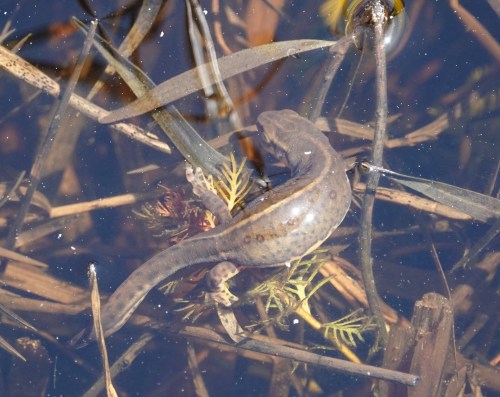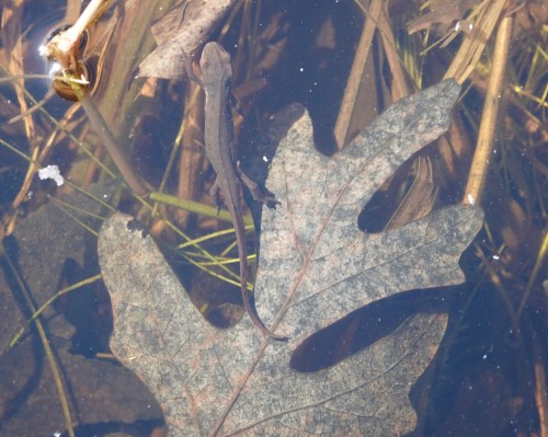 On the newt/salamander semantic issue: “Alone among salamanders found at the station, the eastern red-spotted newt is a member of Salamandridae, the family that comprises all “true salamanders” and newts. It is one of only 7 species of newt in North America, out of only 87 species worldwide. However, this prolific newt is second to only one other US salamander in the extent of its distribution — they are found throughout the eastern US, as far west as Texas and Minnesota. Although no one feature distinguishes newts from other salamanders, they tend to spend more time in the water as adults and have a more complex courtship system.”