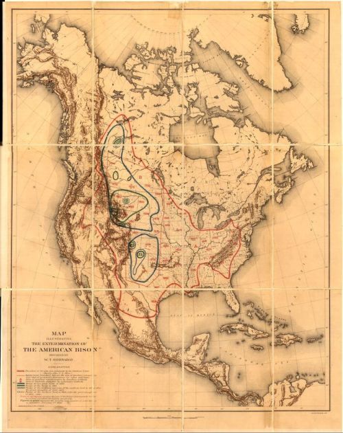 Hornaday and Gannett’s Map Illustrating the Extermination of the American Bison, 1889. (A digital version here.) They were on the eastern side of the Appalachian chain in the colonial period.