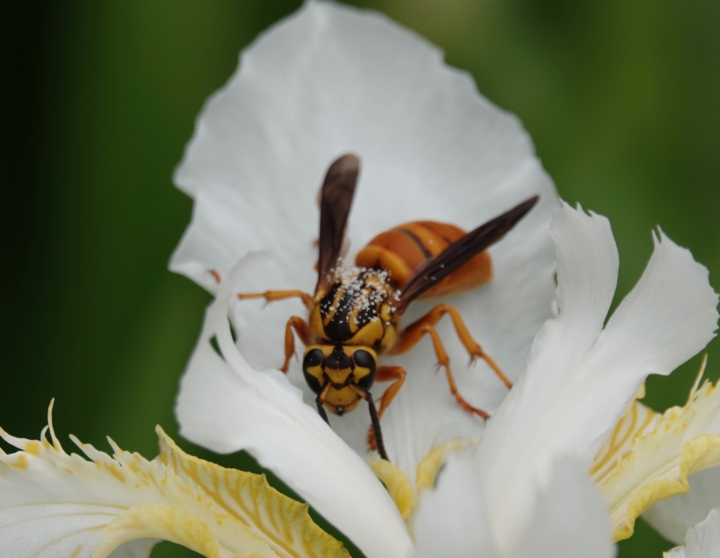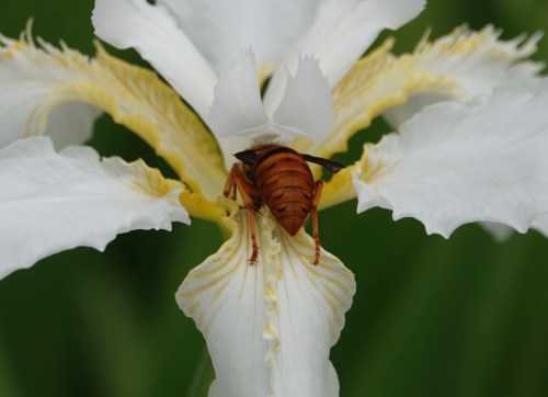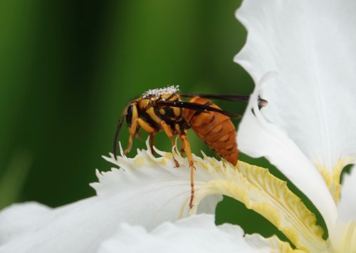 In the garden at the Geo. Washington Birthplace Monument in Virginia, I was delighted to discover this queen Southern Yellowjacket (Vespula squamose).