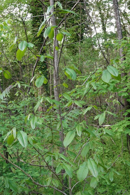 Another understory tree along the same path: pawpaw (Asimina triloba).