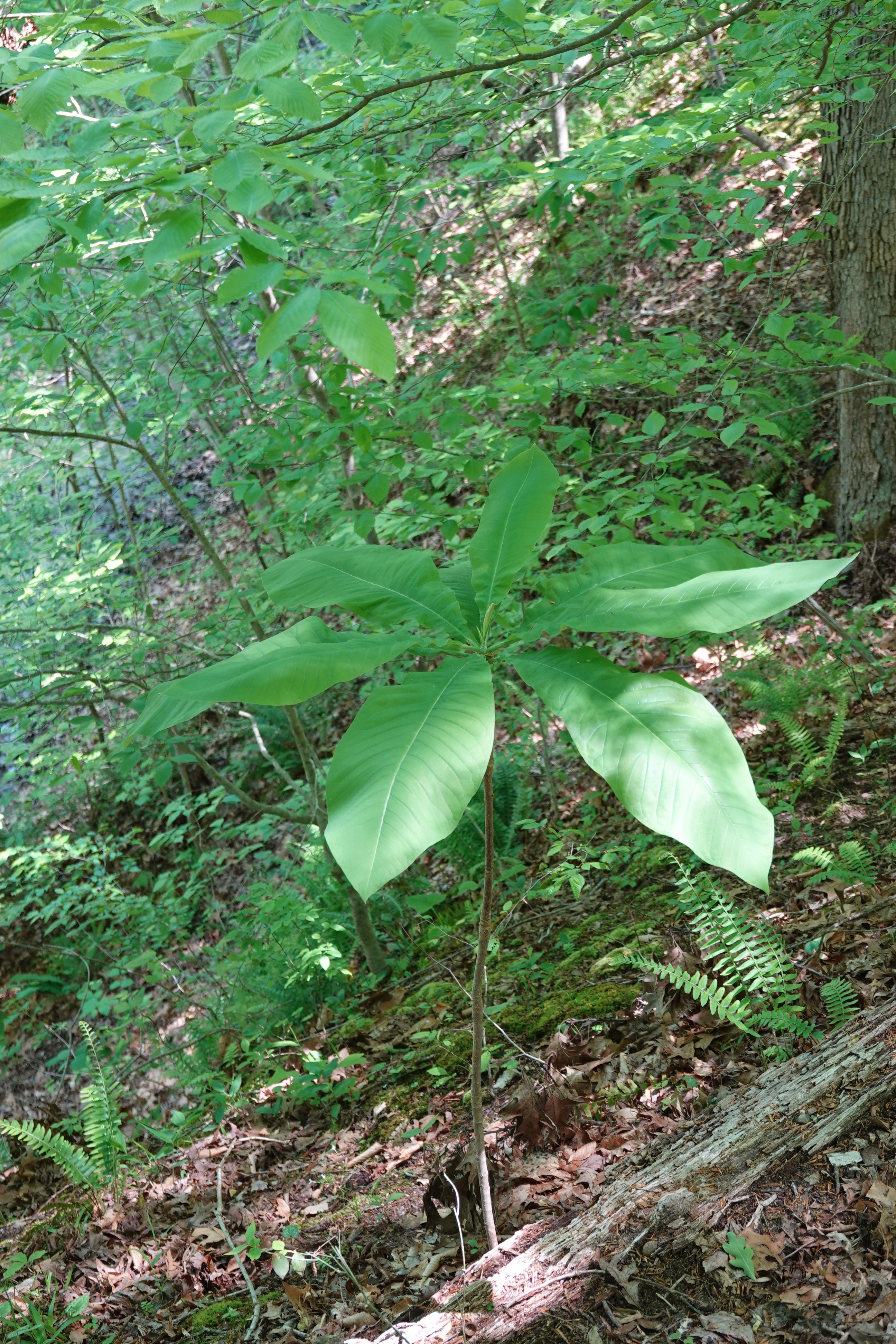 Umbrella magnolias, Magnolia tripetala, an understory tree.