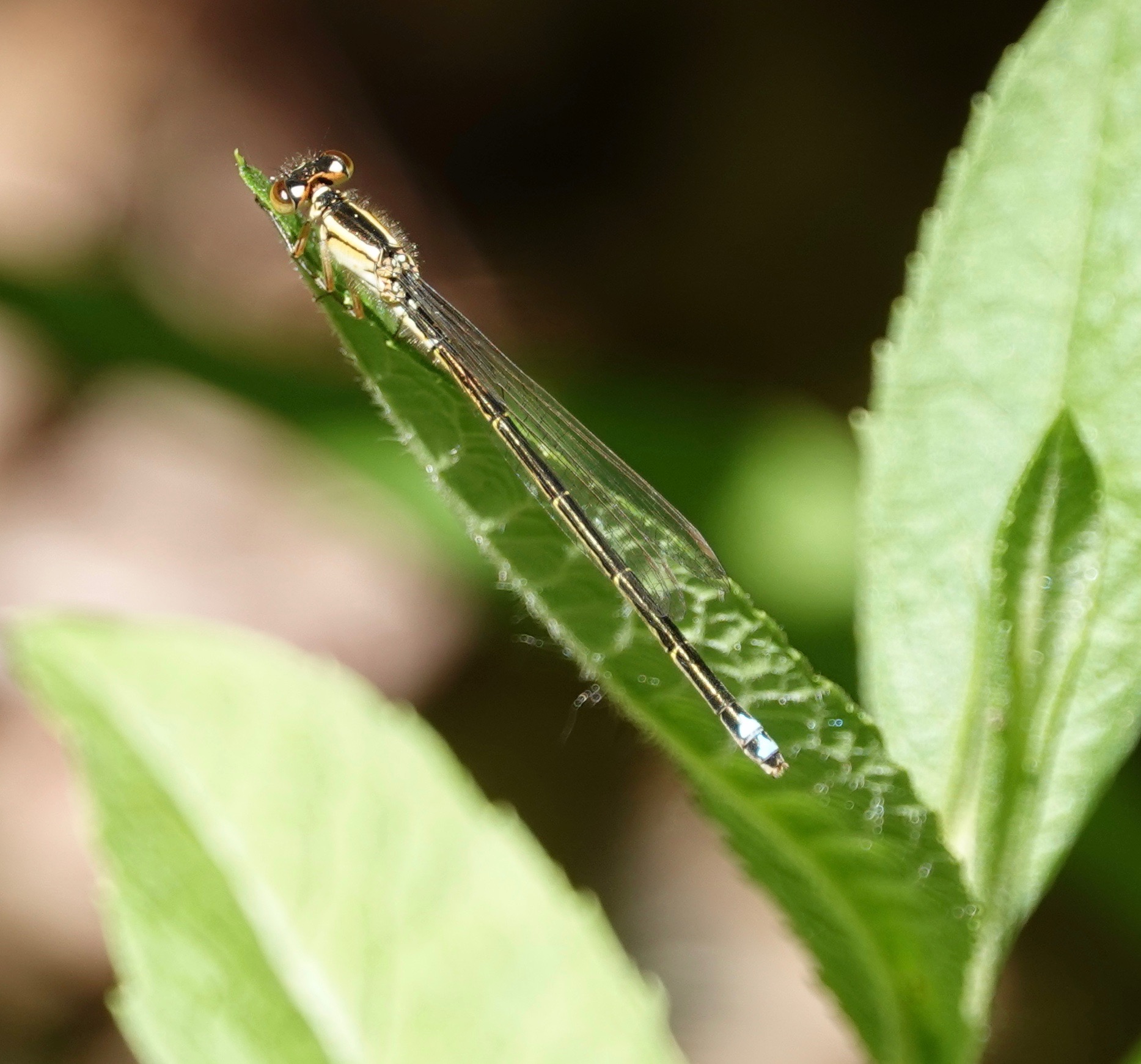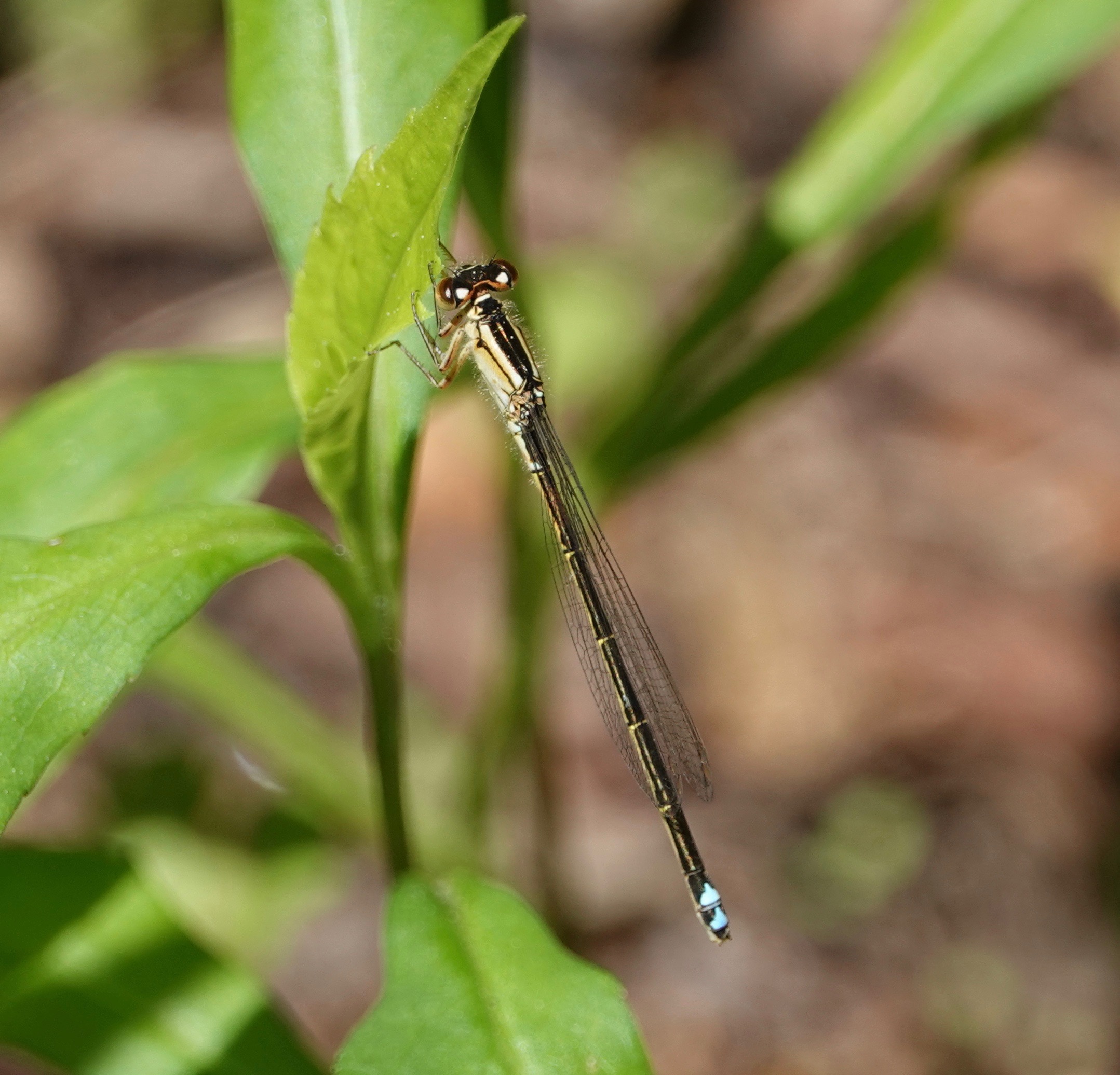 This damselfly is peculiar. I can find no matching ID for it, and both iNaturalist and bugguide.net remain silent to my queries. I think it may be a maturing andromorph (that is, male-like) female Eastern Forktail. Lam illustrates six forms of Ischnura verticalis; Paulson pictures five forms. None of their examples are quite this one, though,