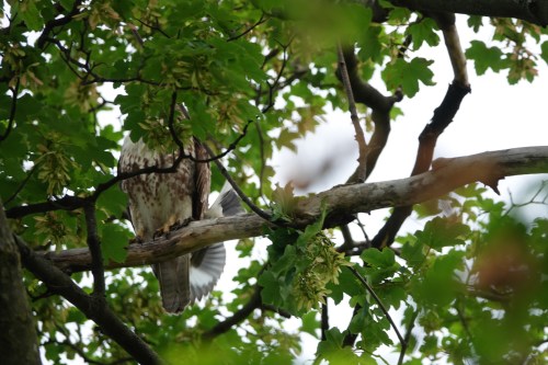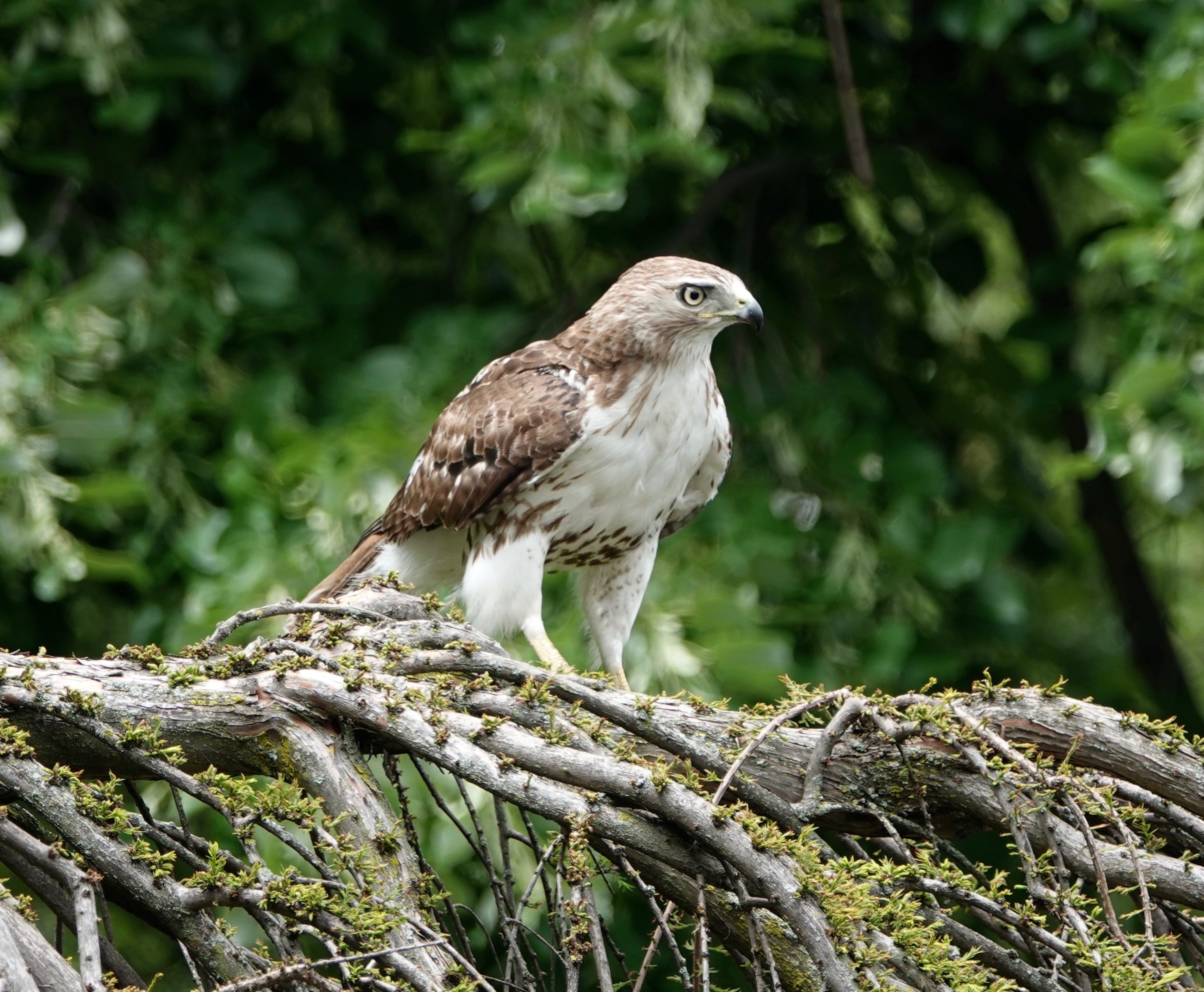 Soon after, but hnheralded by any pissed-off songbirds, this Red-tailed flew up off the ground to land here before taking off to a higher perch.