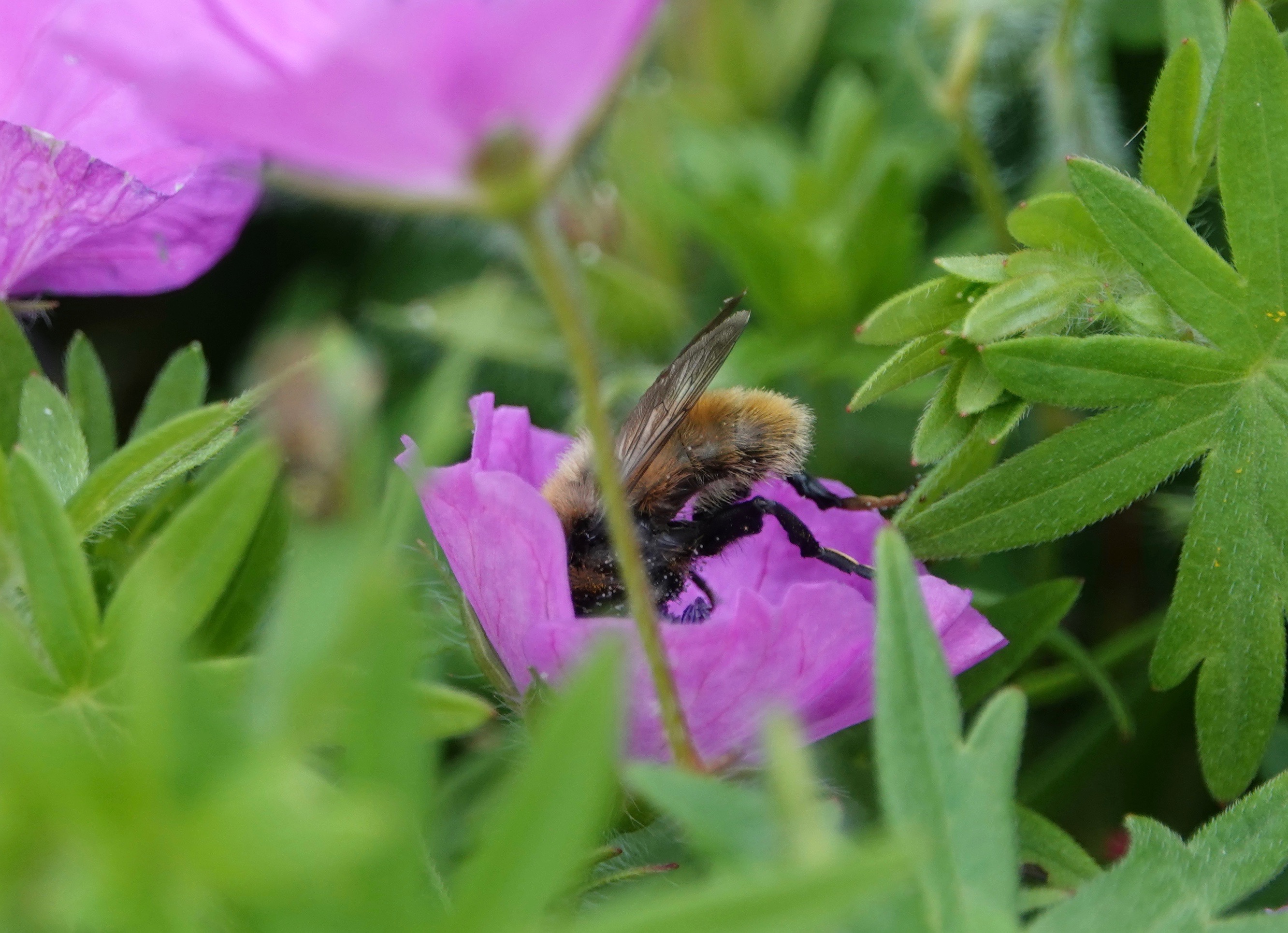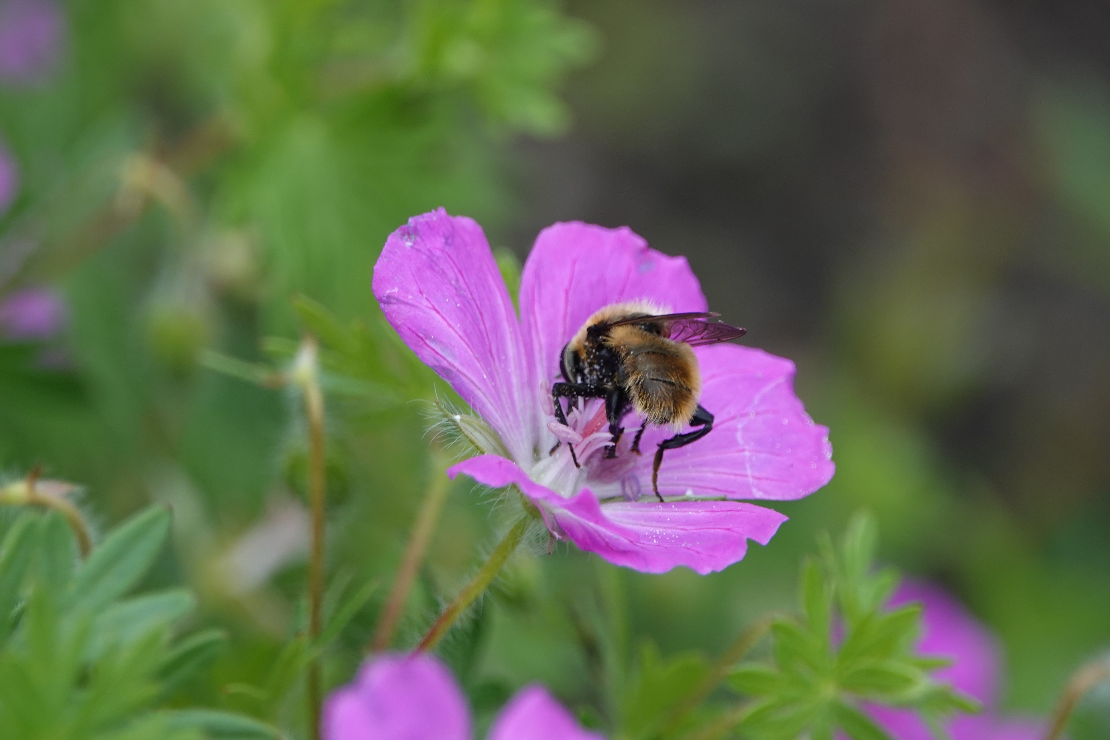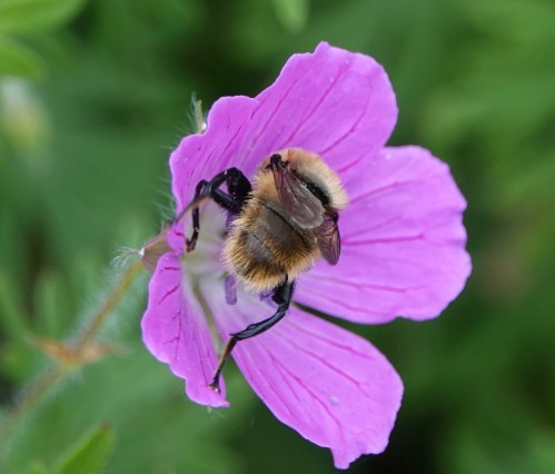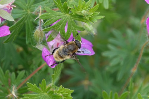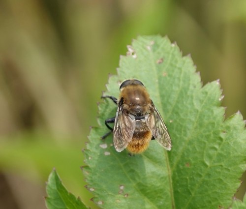 This hairy, burly flier certainly suggests a bumble bee head-butting her way into the nectar and pollen.