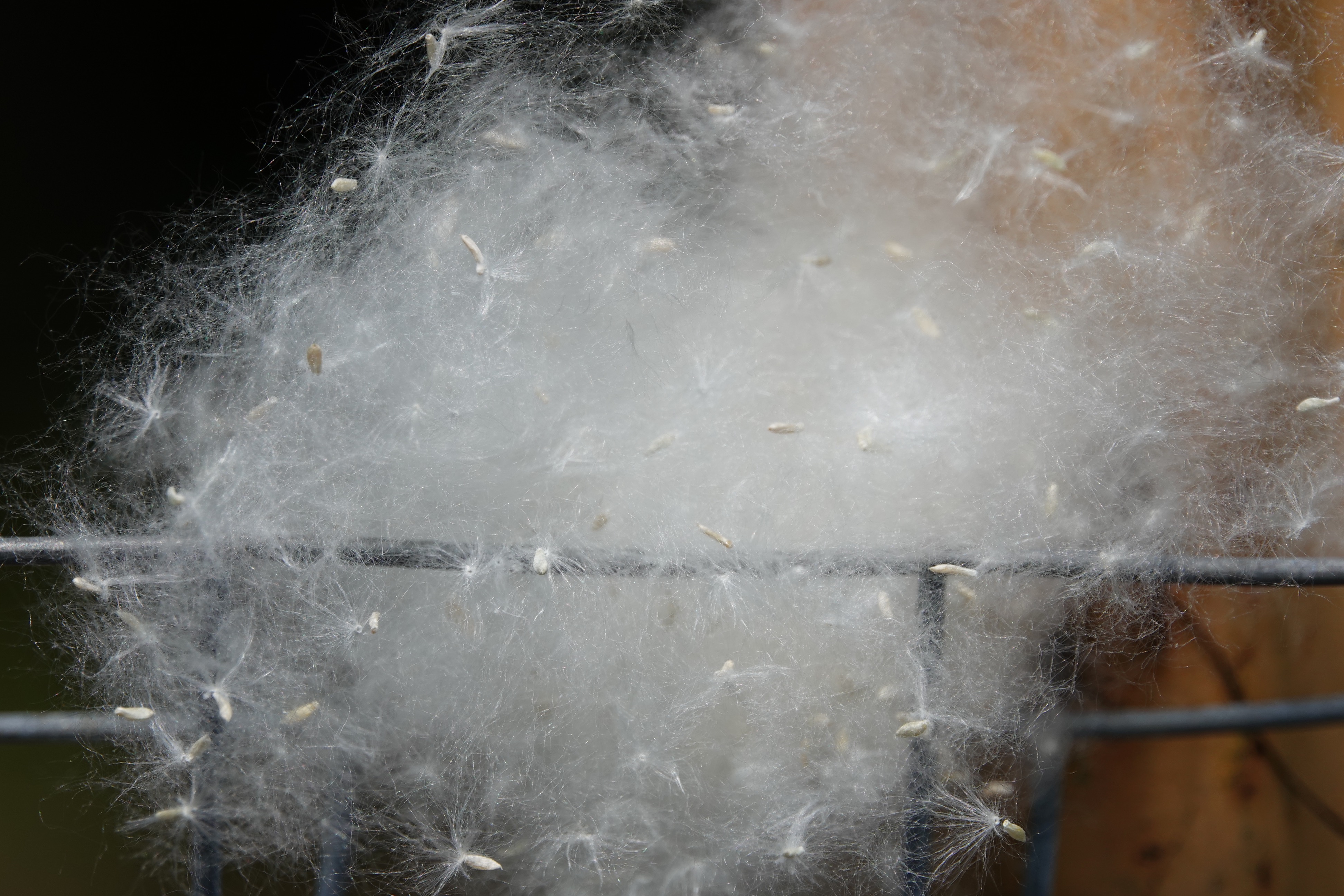 There was so much Eastern Cotton fluff, it was easy to scoop up a handful off the ground. A single mature Populus deltoides can produce an estimated 40 million seeds in a season. The seed is inside the dried fruit or achene attached to cotton-like filaments that help transport it through the air.