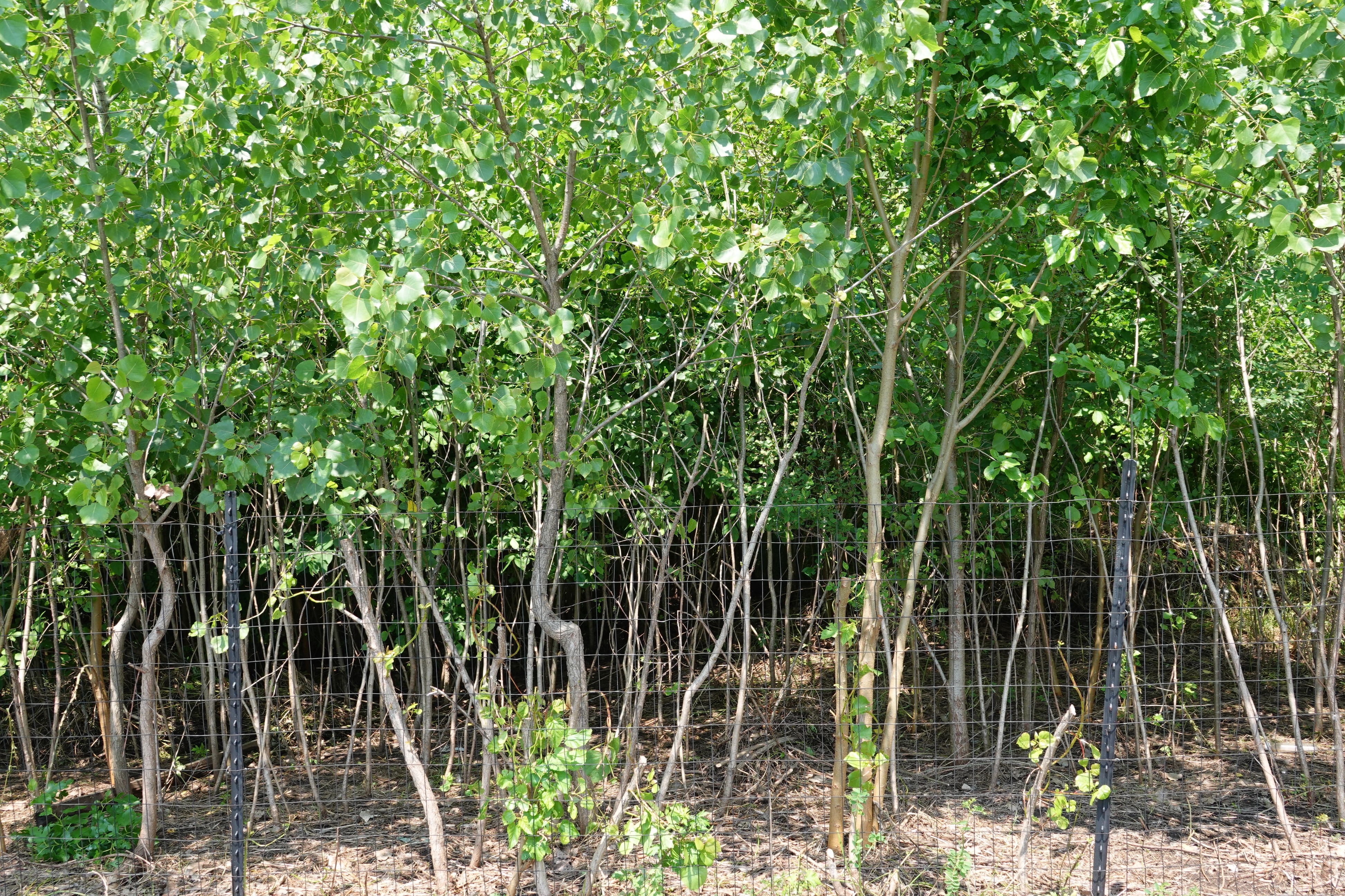 And looking the other way: a thicket of the fast-growing saplings beyond the fence.