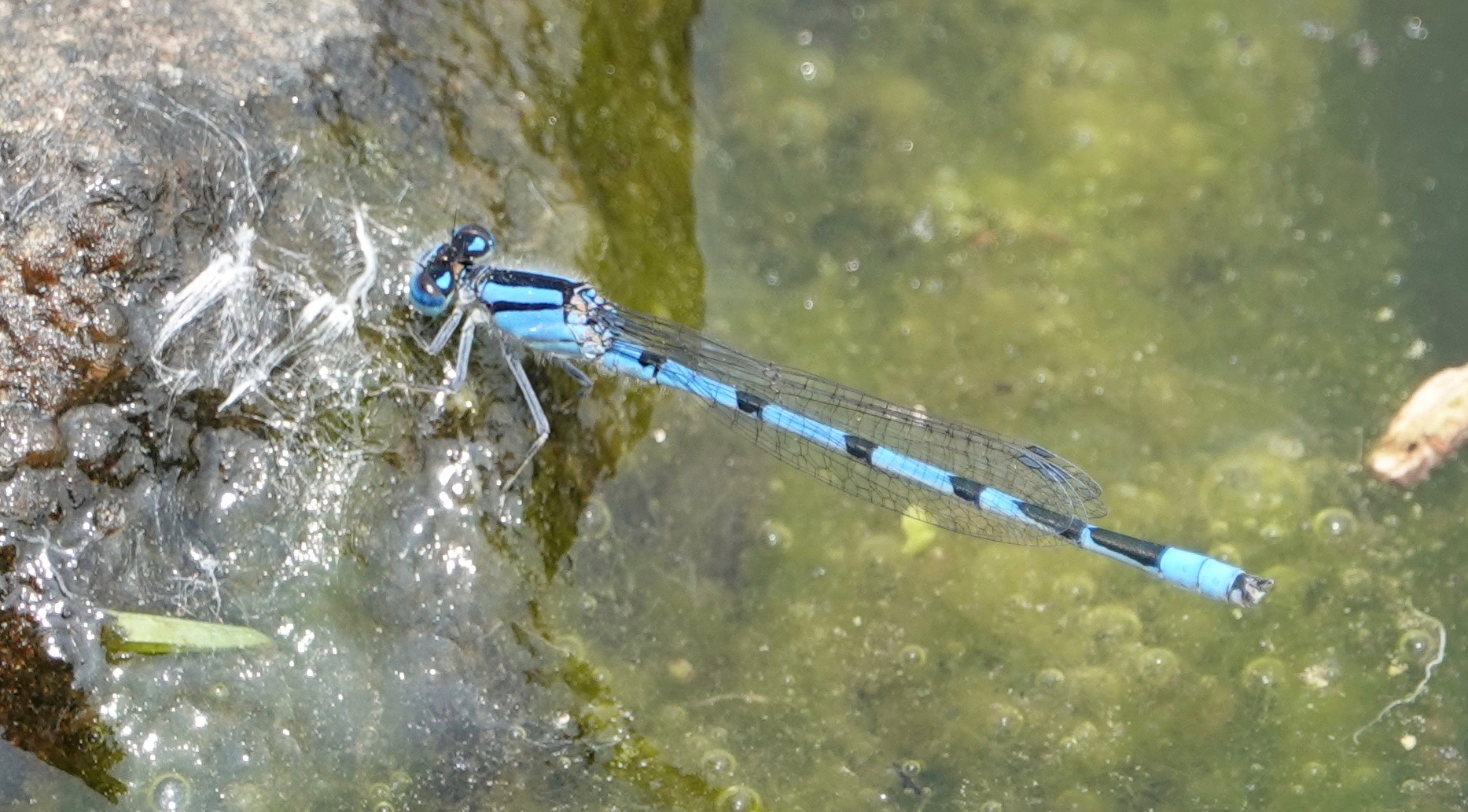 Familiar Bluet male. Several of the mostly-blue bluets of the Enallagama genus can only really be told apart by their cerci. These are the structures at the end of the abdomen.