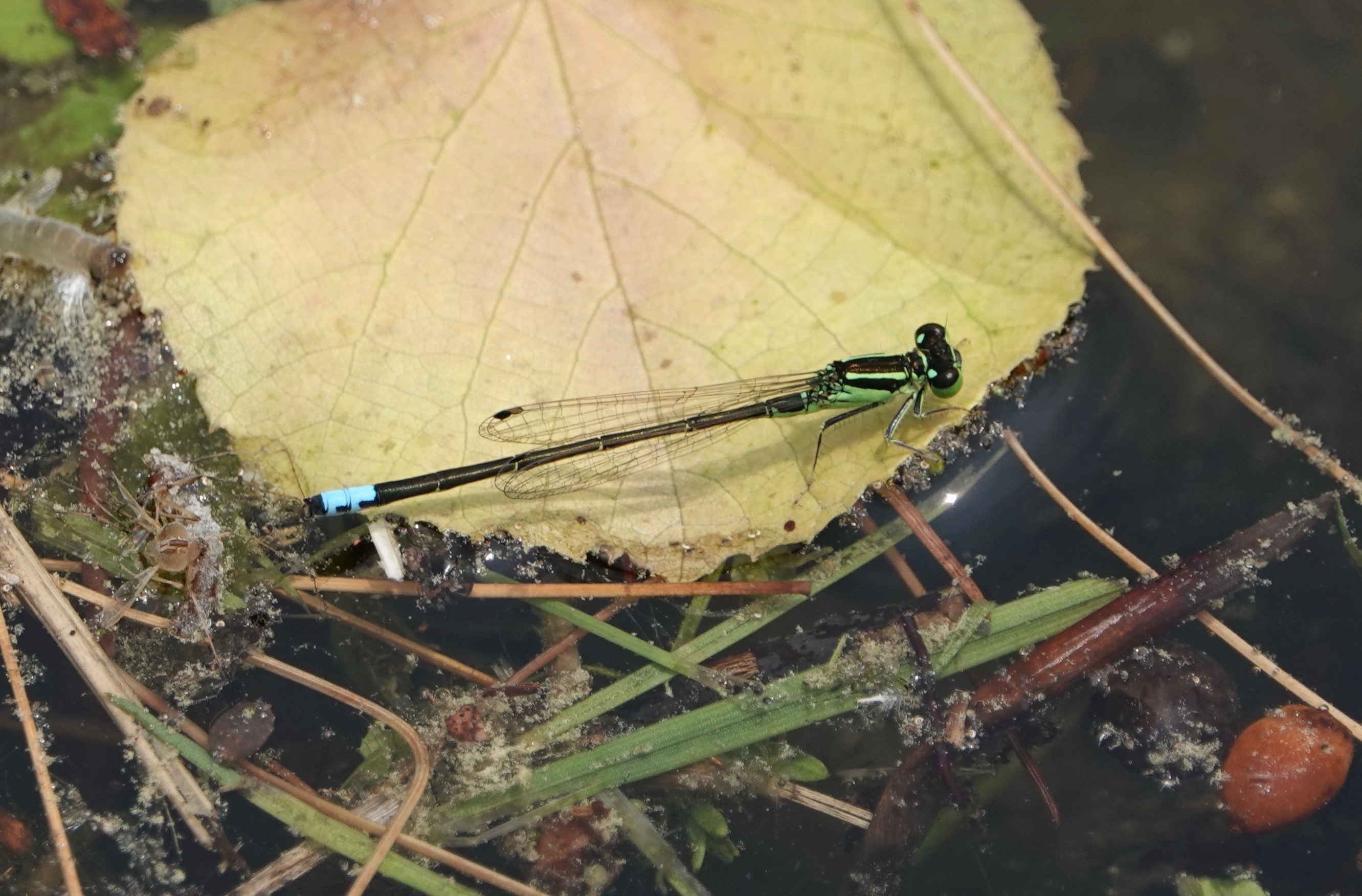 Eastern Forktail male. Beware that Rambur’s Forktail and Furtive Forktail males also have variations on this green thorax/blue end segments coloring.