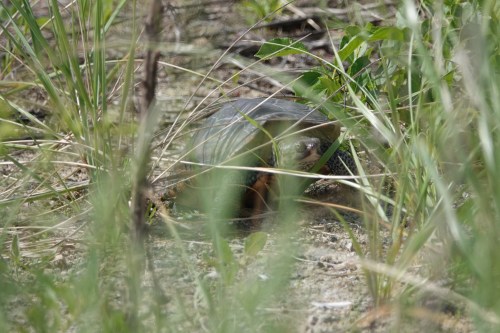 It’s hard to see through the intervening plants, but this terrapin is just starting to dig a hole for her eggs.