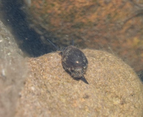 Little freshwater mollusks in the Physa genus, according to the iNaturalist community. The aperture is on the left side, hence sinistral.