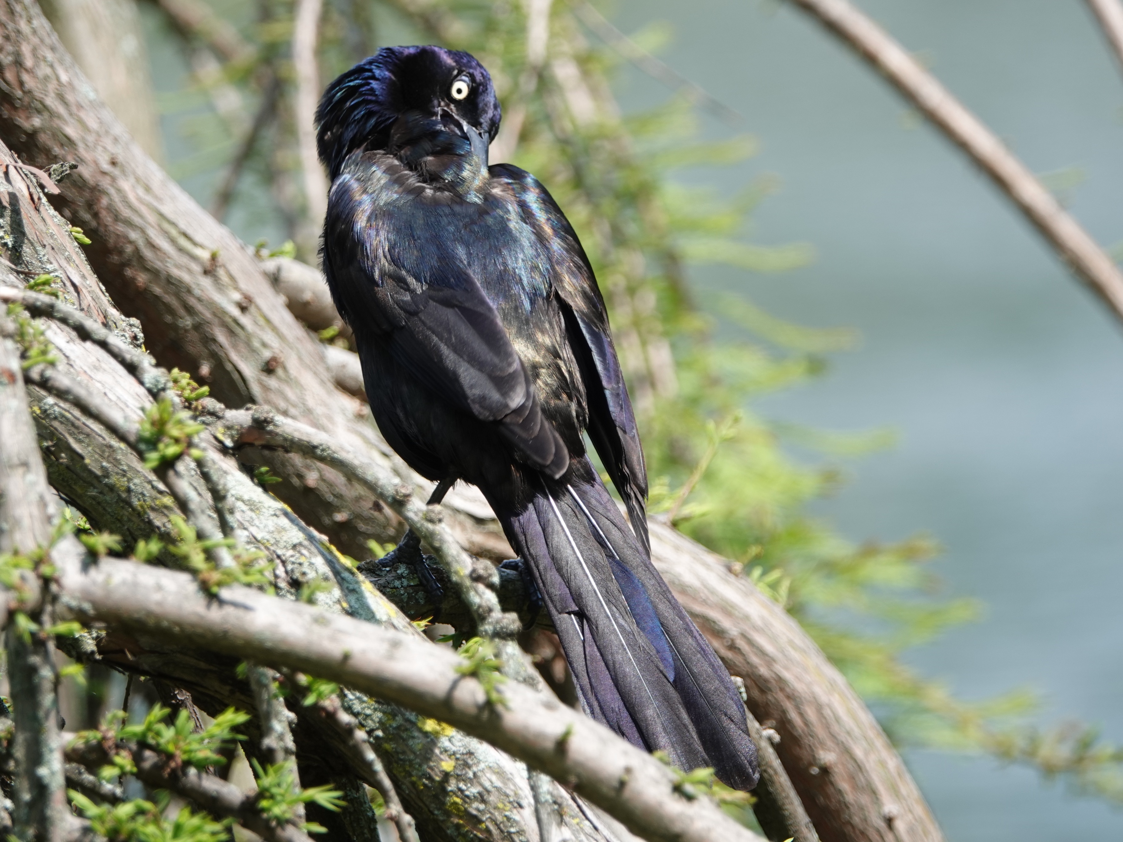 My favorite “spring bird” – robins are no longer significant harbingers since they are here in significant numbers all year long, but grackles come back in large flocks, encouraging me to think that winter may finally end.