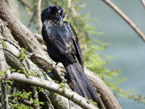 Feather-grooming after bathing. Looks perturbed, but hey, that’s just grackle.