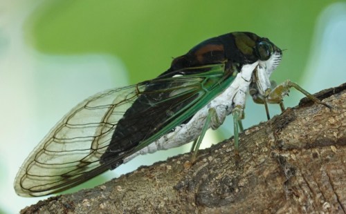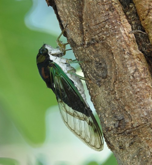 These Neotibicen annual cicadas are more often heard than seen. When I do come across them, they’re usually dead. While their exoskeleton exuviae can be found gripping tree trunks under ten feet from the ground, the adults are usually way up in the tree, hidden by all that foliage. (You’d hide too, if giant wasps were hunting for you, and mammals treated you like crunchy snacks.)