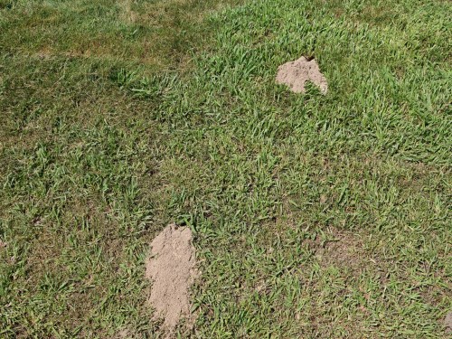 Elsewhere in Green-Wood: the lower nest here (the dirt slide is more than a foot long) has been here since at least July 28. Besides the second nest seen here, there were four others in this area. Most were on the flats above this slope.