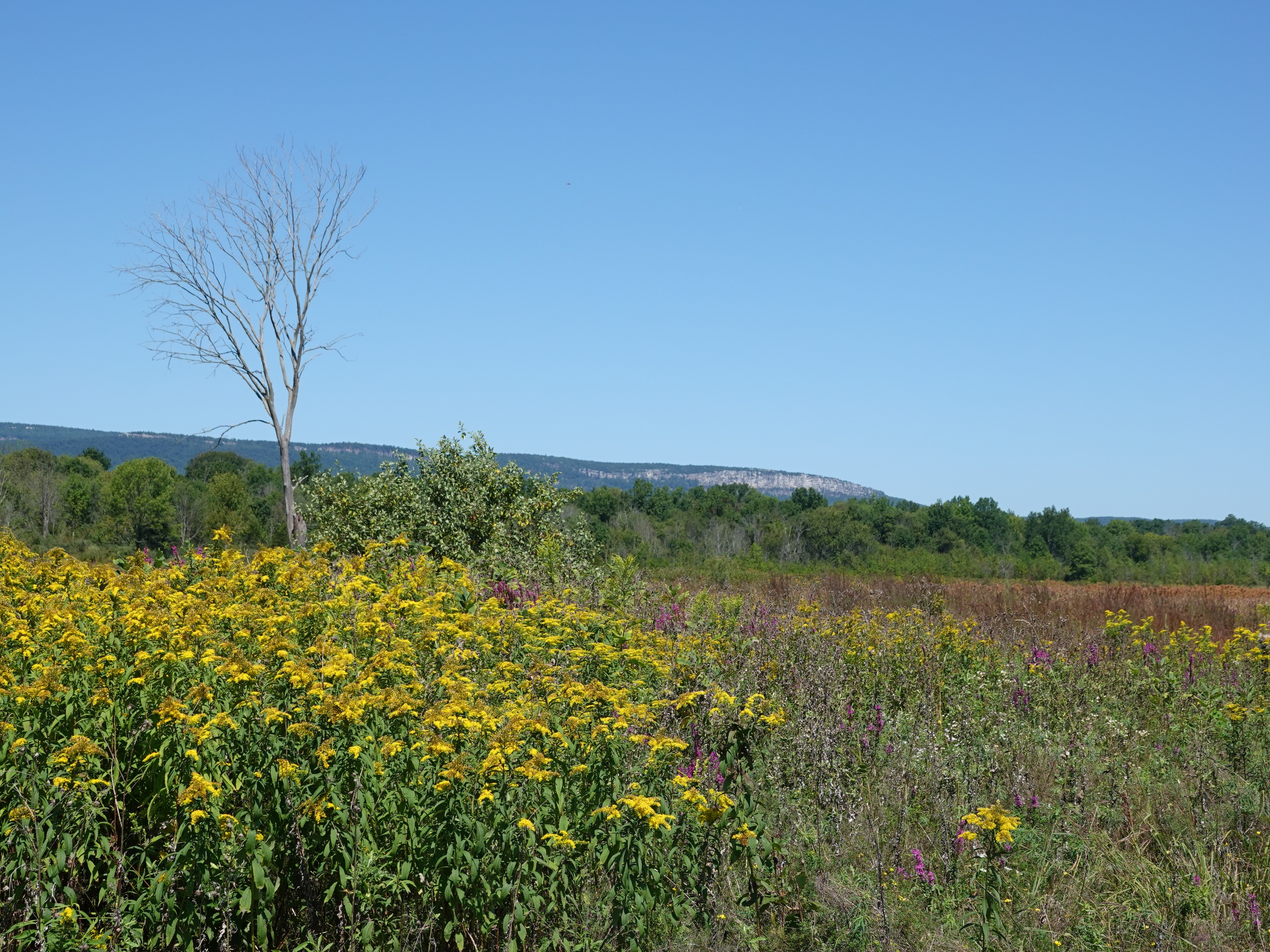 About two hours from here by infernal combustion, Shawangunk Grasslands NWR was twitching with grasshoppers. Dozens fired away from the short grass of the path before us. There were even many on the parking lot concrete, the remains of the old airport there.