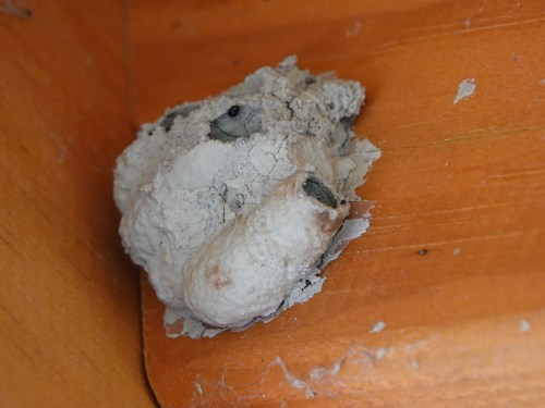 Still at Shawangunk. There’s one of those perma-porta-potties, thick with Drain Flies, and an observation gazebo. Mud-daubers and paper wasps appreciate the dry, sheltered spot.