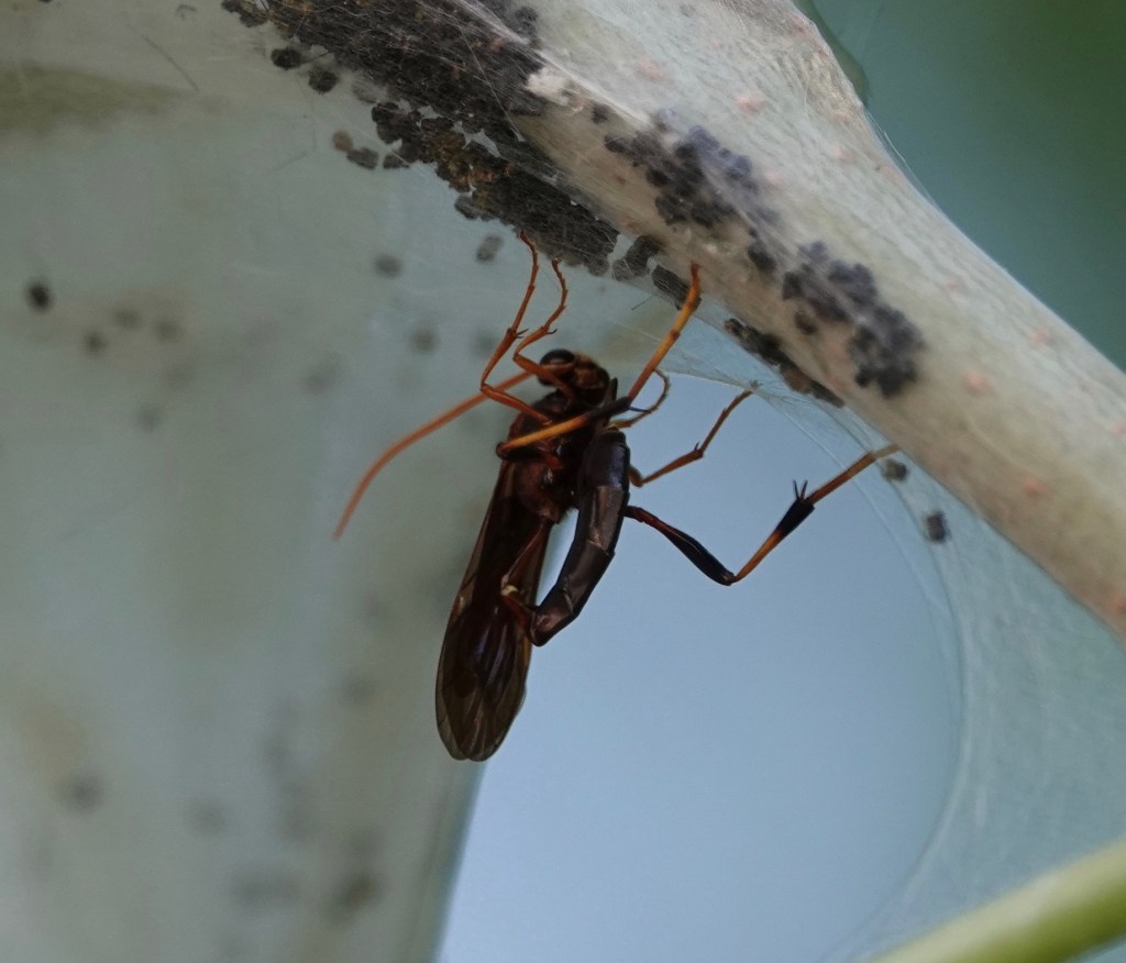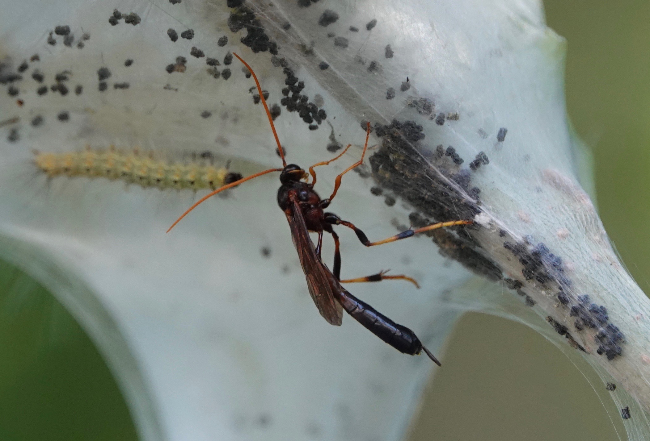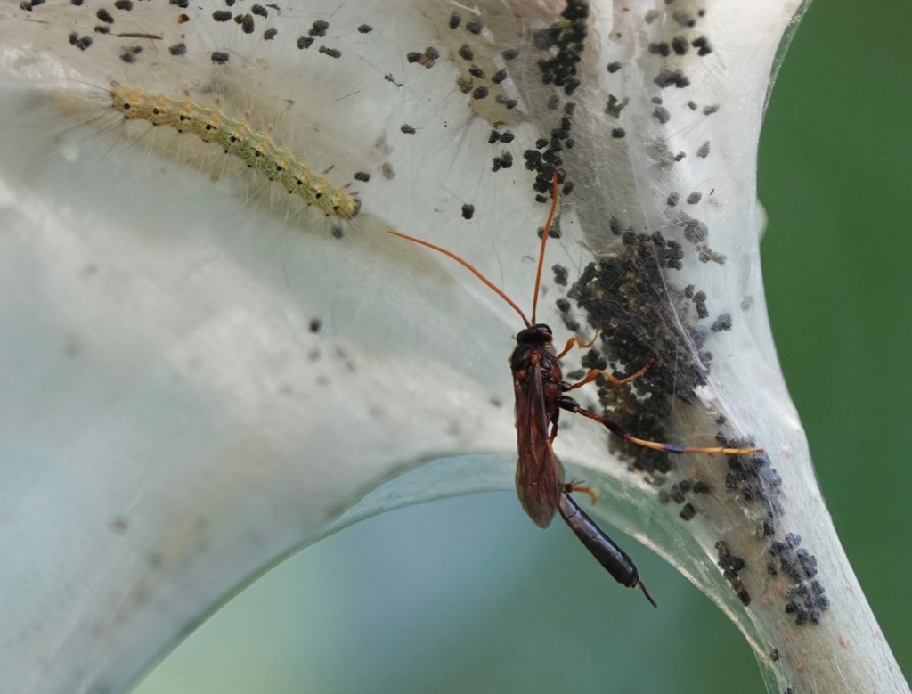 You see, everybody knows the prolific caterpillars are out and about. Dozens of parasite species attack Fall Webworm, which provide a lot of meat. This one is an ichneumon wasp. I’m not sure what her strategy is because I can’t get her down to species level. She’s a member of the tribe Gravenhorstiini of the family Ichneumonidae.