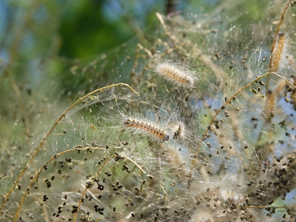 Fall Webworm caterpillars have been everywhere. This one was on a raised bed on the sidewalk next to the local high school last week, with barely a tree in sight.