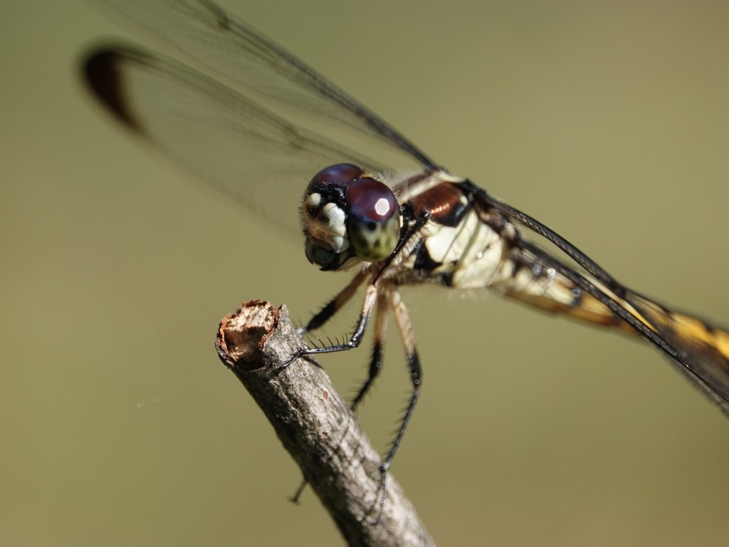 Writes Dennis Paulson in his natural history of Dragonflies & Damselflies: “Because a chitinous exoskeleton does not have a sense of touch like the skin of a vertebrate animal such as ourselves, they have sensory hairs or setae covering much of their body, everywhere except the surface of the eyes.” Such massing of “sensilla” work as tactile organs that “can be specialized for the reception of chemical (smell), mechanical (touch), or thermal (termperature) stimuli.”