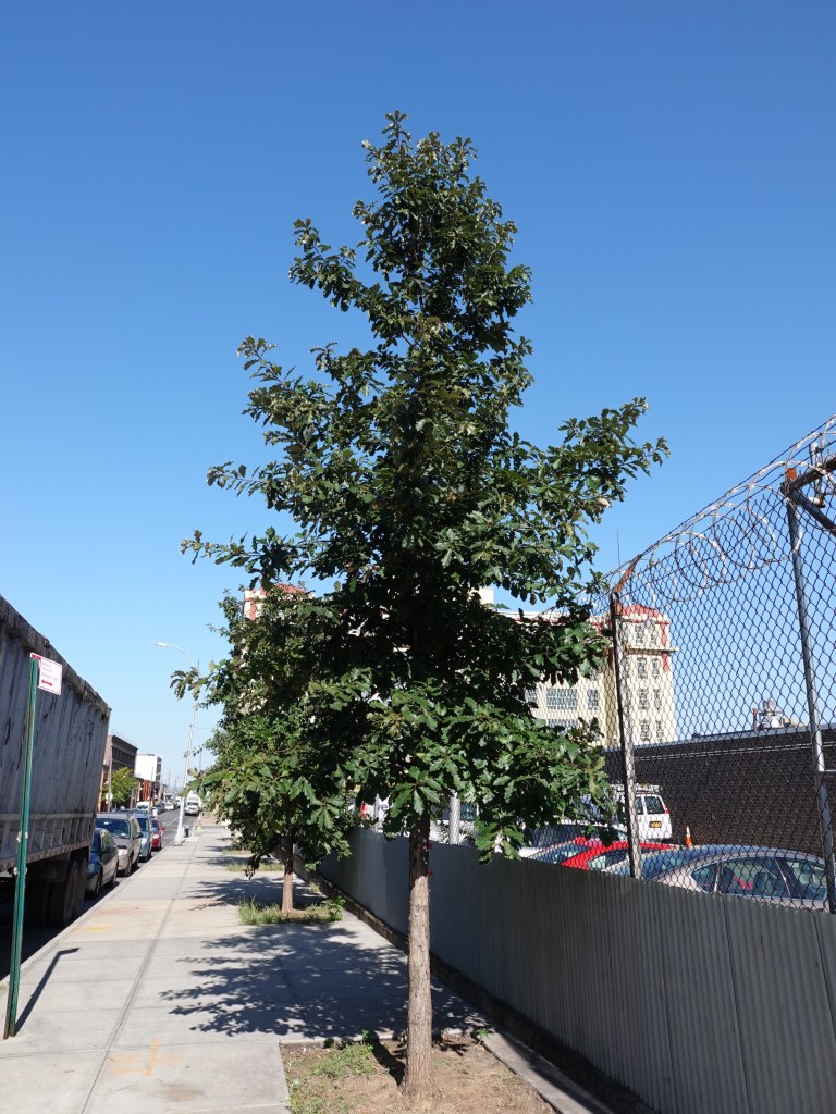 A swamp white oak (Q. bicolor) on an industrial block below the tree-line, which is very marked in Brooklyn.